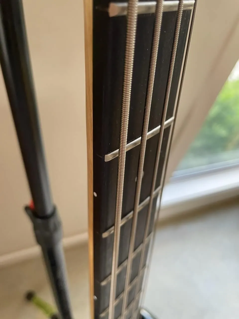 The guitar has sharp fret ends. It needs filing to smooth the sharp edges.