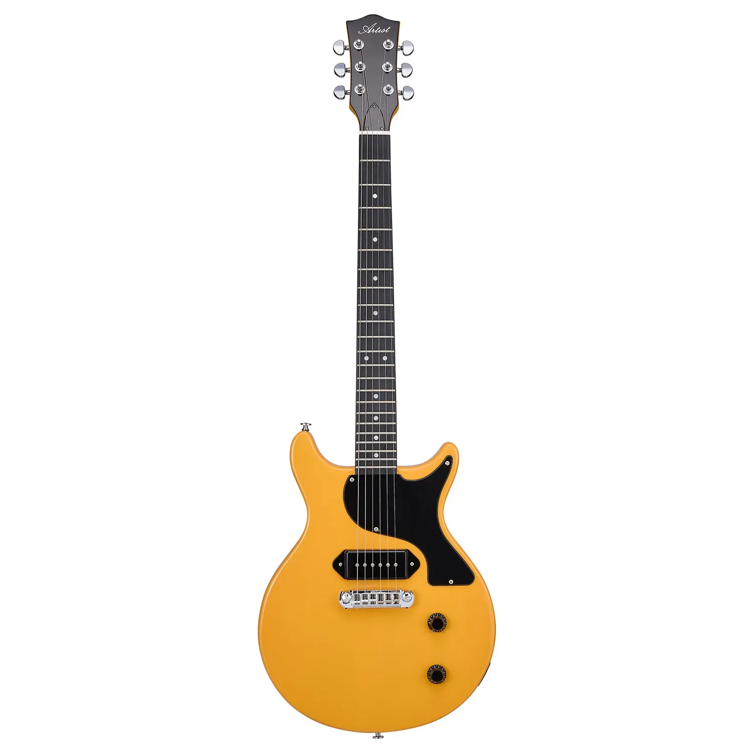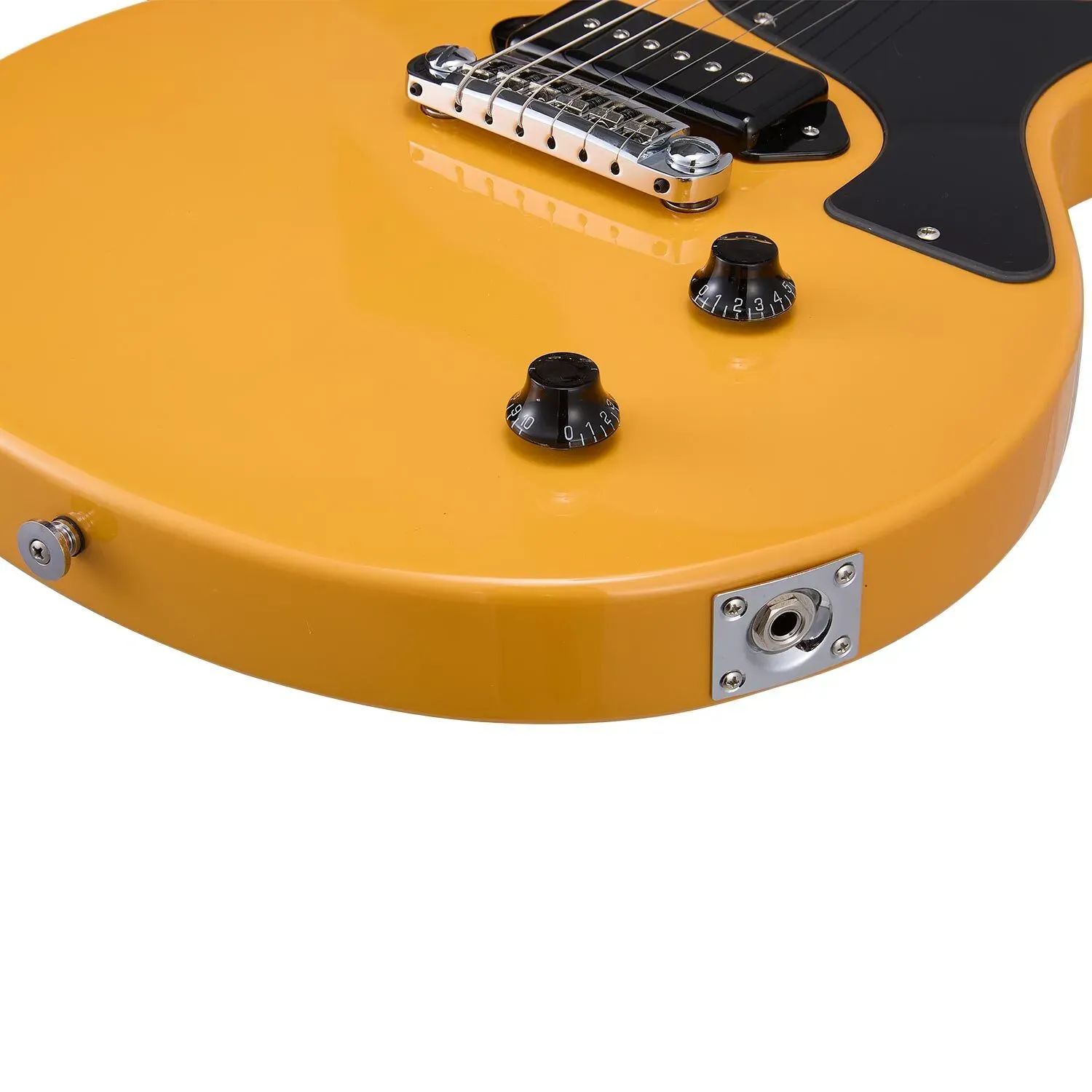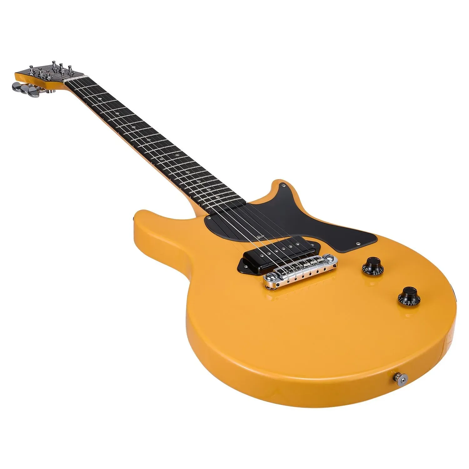 It features a timeless TV Yellow finish over a solid African Mahogany body, with a simple black scratch plate completing this classic look. The Mahogany set neck has a high-grade Eco-Rosewood fretboard, Dot Mother of Pearl Inlays, 22 frets in a 24.75"" scale length, and a comfortable C-shape radius.