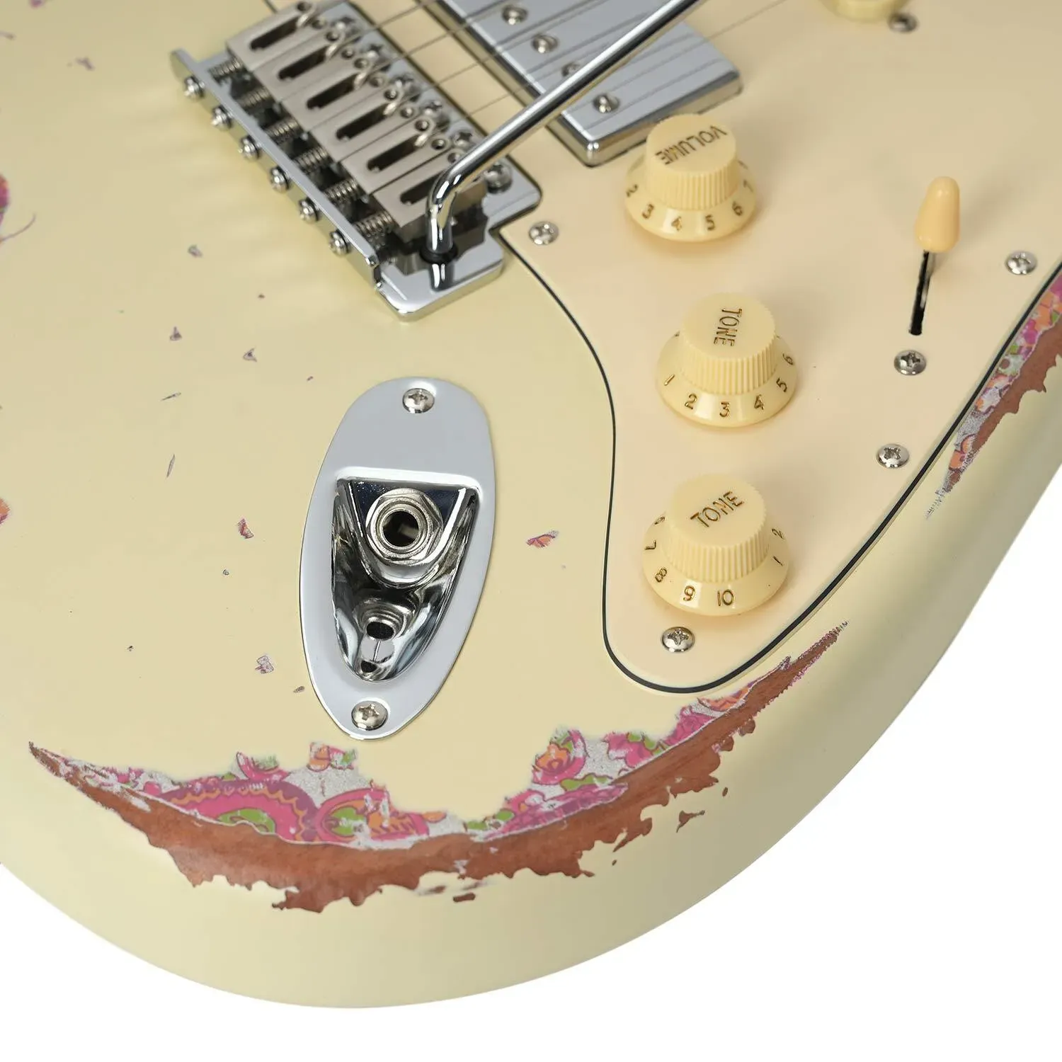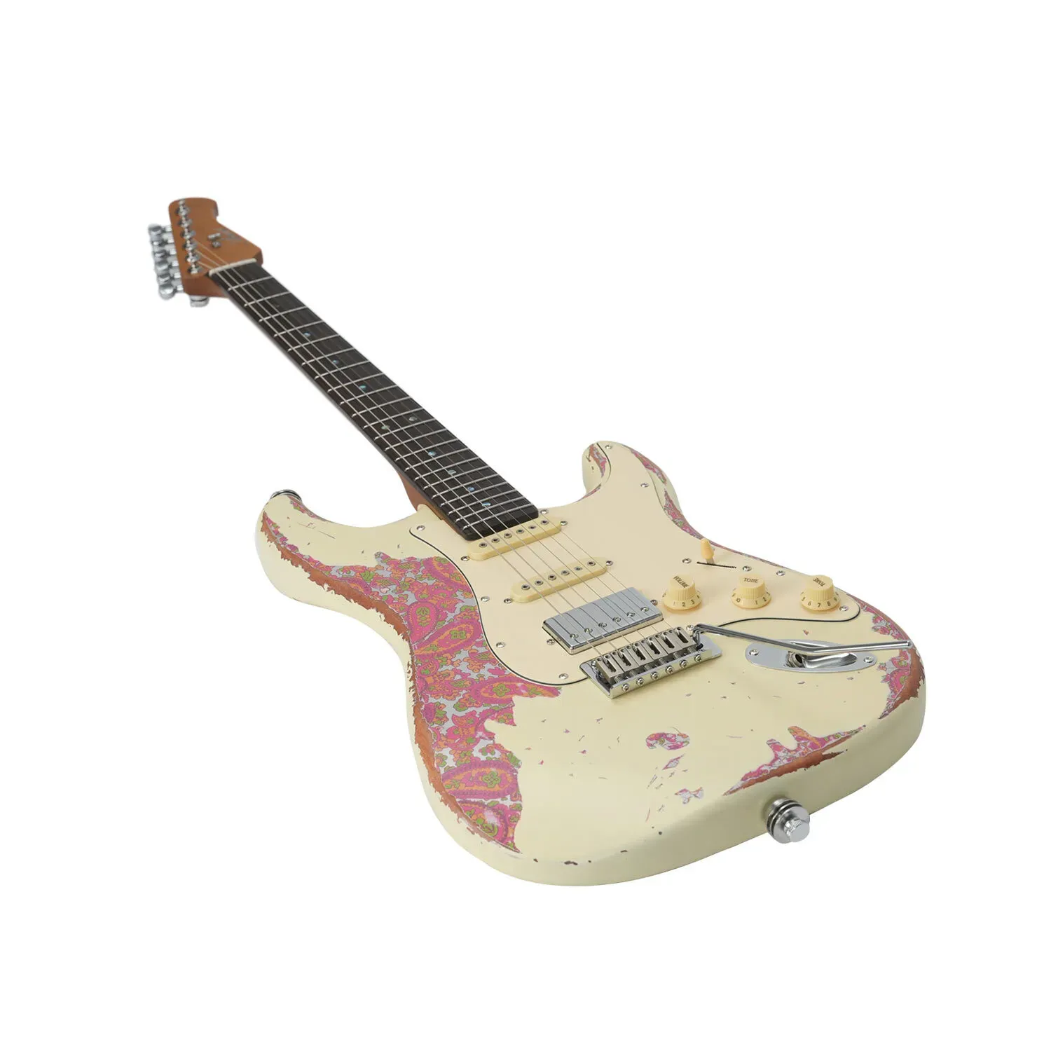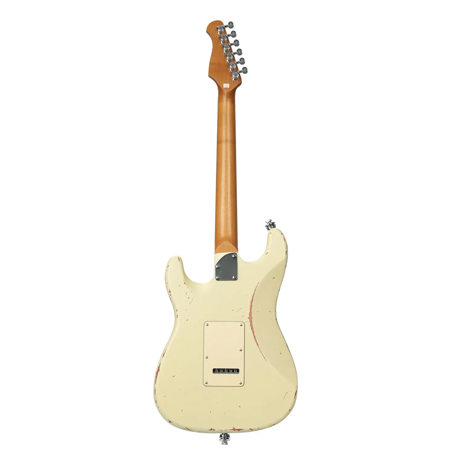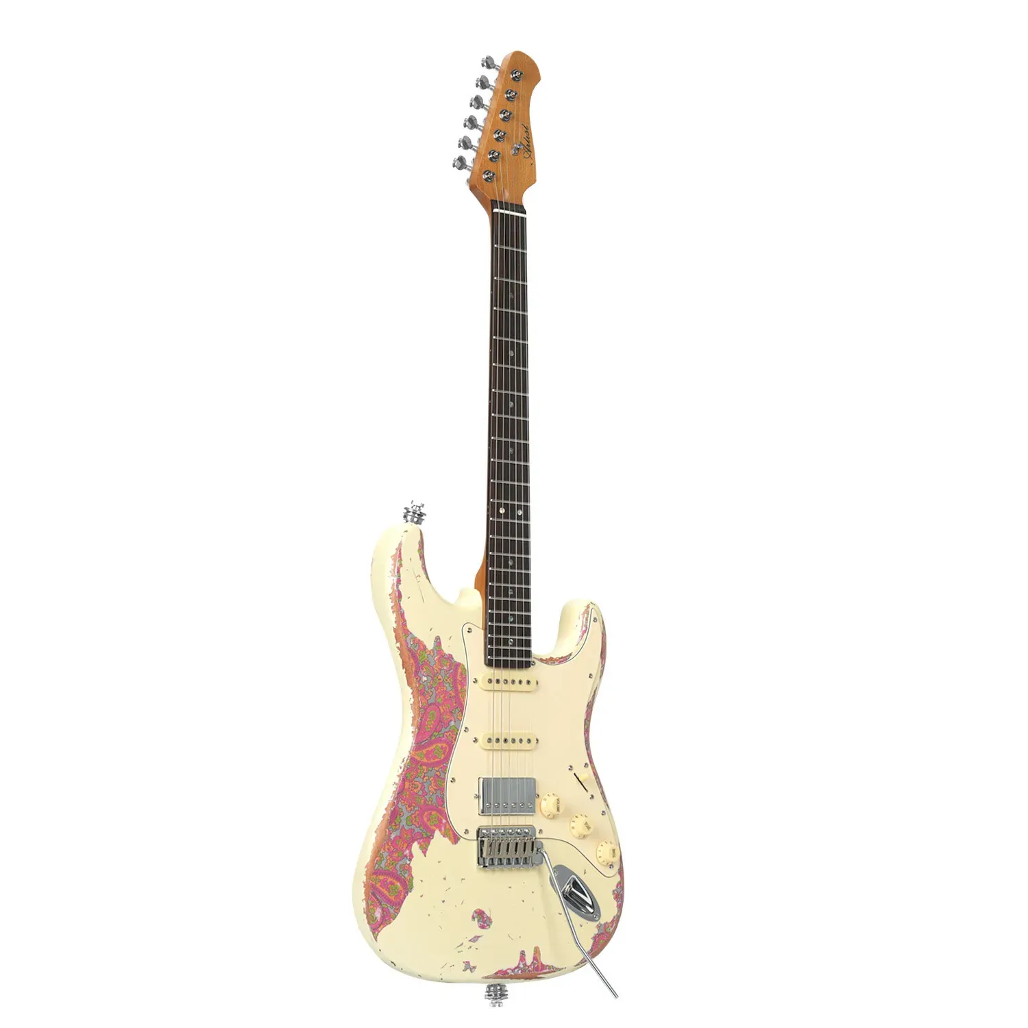 Dig beneath the ordinary and reveal the extraordinary. The Artist AS72 comes bounding through time, from the paddocks of Woodstock 1969 into your waiting hands - but not without a quick stop off to catch up with the times! We painstakingly aged the vintage-style nitrocellulose finish on these, adding a scar here and a gash there to give your brand-new guitar that well-loved look. The roasted maple satin neck is topped with a rosewood fretboard, a material becoming rarer by the day within the worldwide guitar market. The 14" fingerboard radius allows for super low action and effortless bends, while glow-in-the-dark fret markers on the side of the neck map the fretboard on even the darkest of pub stages.