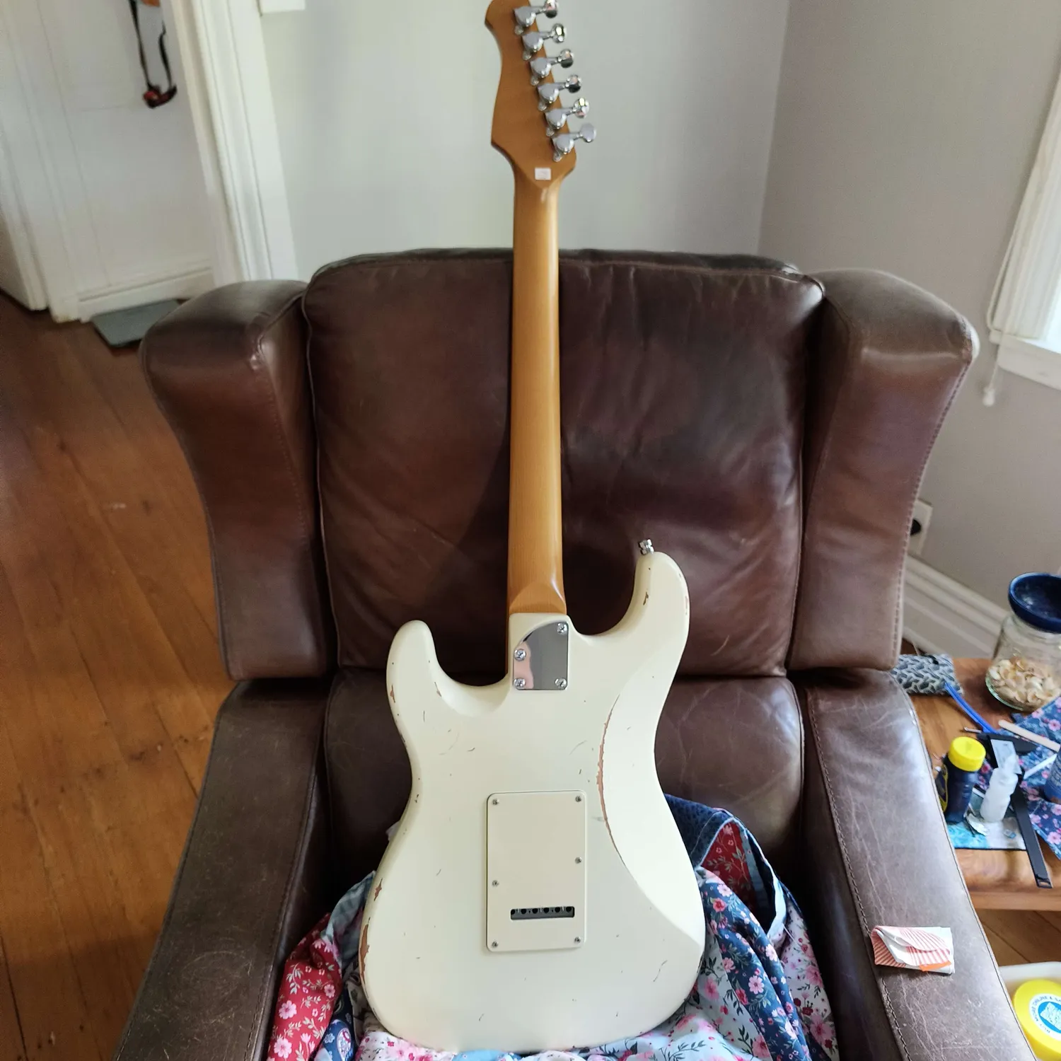 The guitar is missing the logo decal and shows signs of neck bow. May require a truss rod adjustment and set-up.