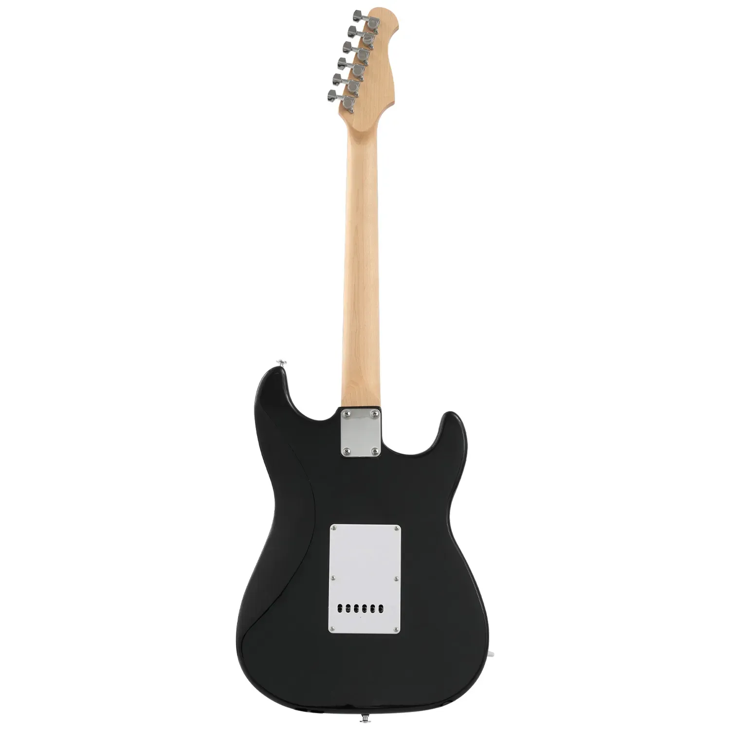 The guitar features a solid Poplar body with a sleek basswood veneer and various colour options, letting you pick which look is right for you! Featuring a one-piece maple neck, this guitar is built for comfort and ease of play. The C-shape neck profile and 22 frets are perfect for beginners, offering a balanced feel and excellent playability. The eco-rosewood fretboard offers smooth action for both fretting and soloing.