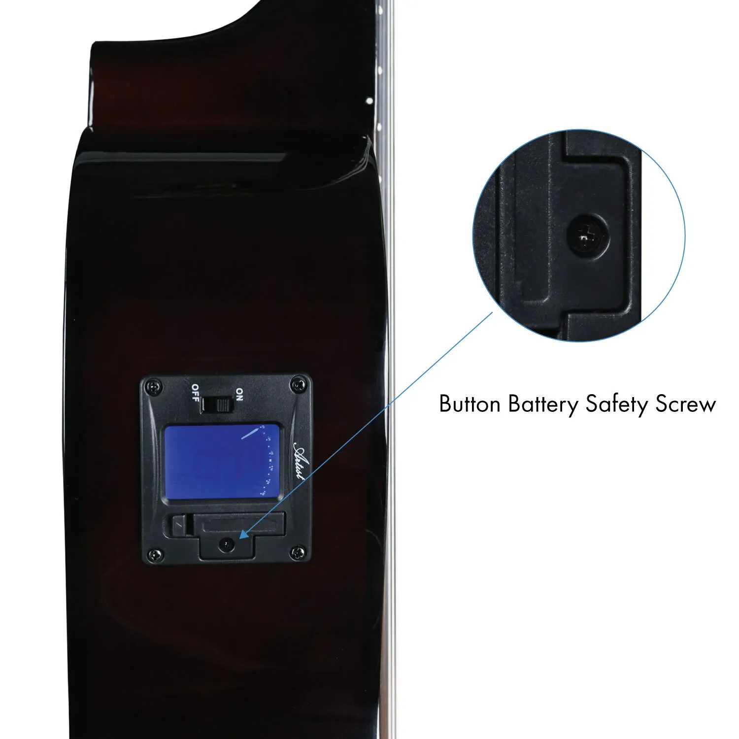 The guitar has been set up at the factory for optimum beginner playing level. We call this Practical string action. String action is the height between the string and the fretboard. This is very important because a guitar with a high action is hard to play, while a guitar with too low an action will buzz unnecessarily and sound bad. Artist Guitars are set up at the factory for the optimum level for a beginner.