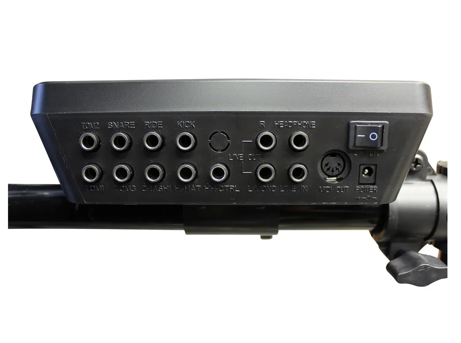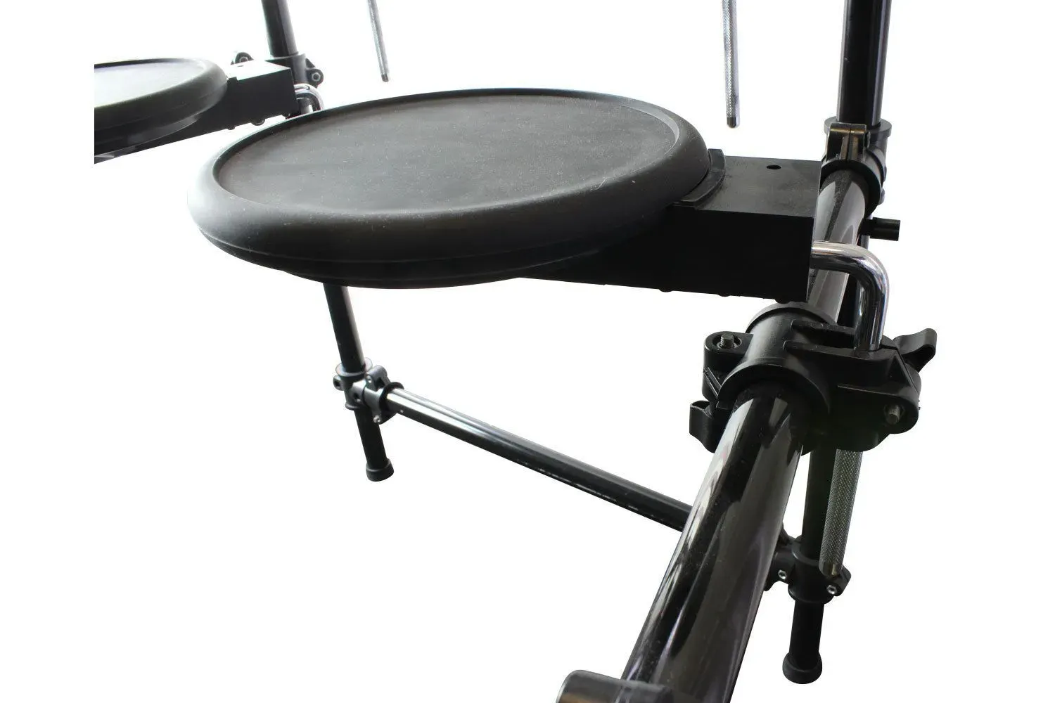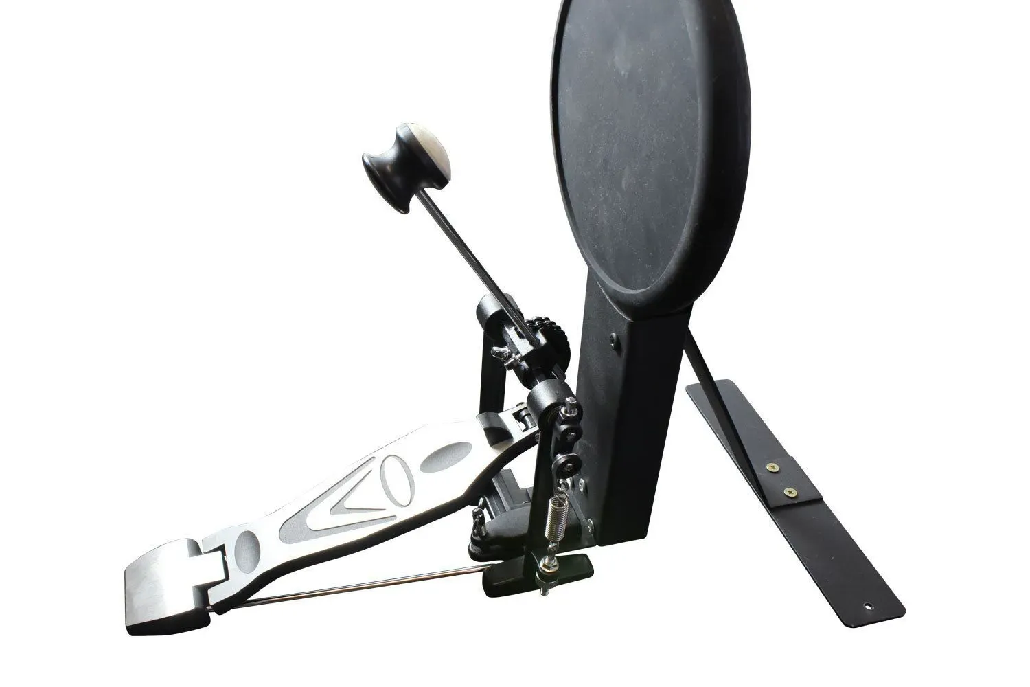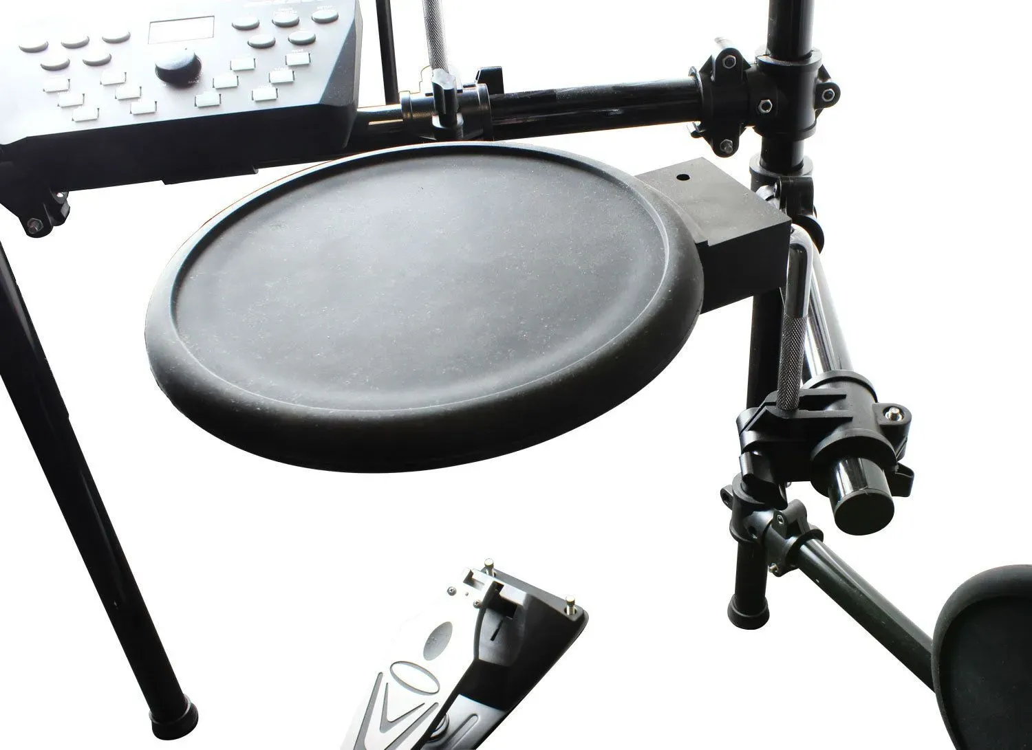 The snare pad features a dual-trigger so that you can assign different sounds to the centre and the rim of the pad. This will work with any standard double kick pedal (if you want to turn this into a double kick)