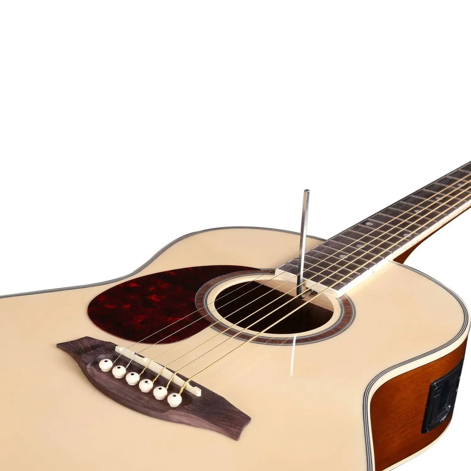 It has a Low String Action (all our guitars are set-up at the factory for optimum beginner playing level). String action is the measurement from the top of the 12th fret to the bottom of the string. This is very important because a guitar with a high action is hard to play, a guitar with too low an action will buzz and sound bad. Artist Guitars are set up at the factory for the optimum level for a beginner.