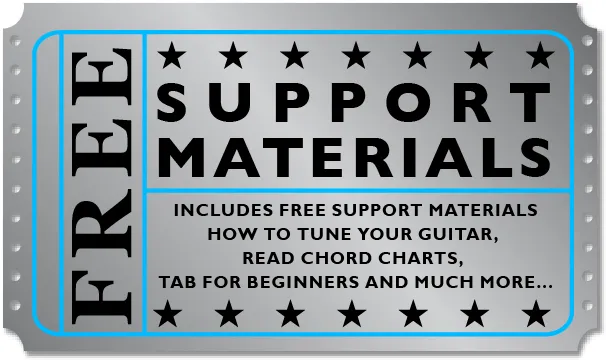 We include a range of Support Materials including how to tune, how to read tab, basic chord shapes and much more.
