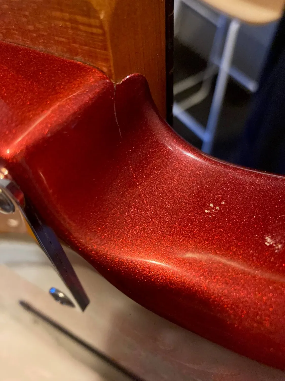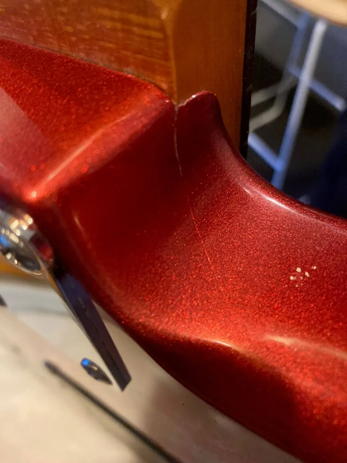 The guitar has some imperfection and cracking at the neck joint. These are cosmetic issues and have no effect on the sound or playability of the guitar.