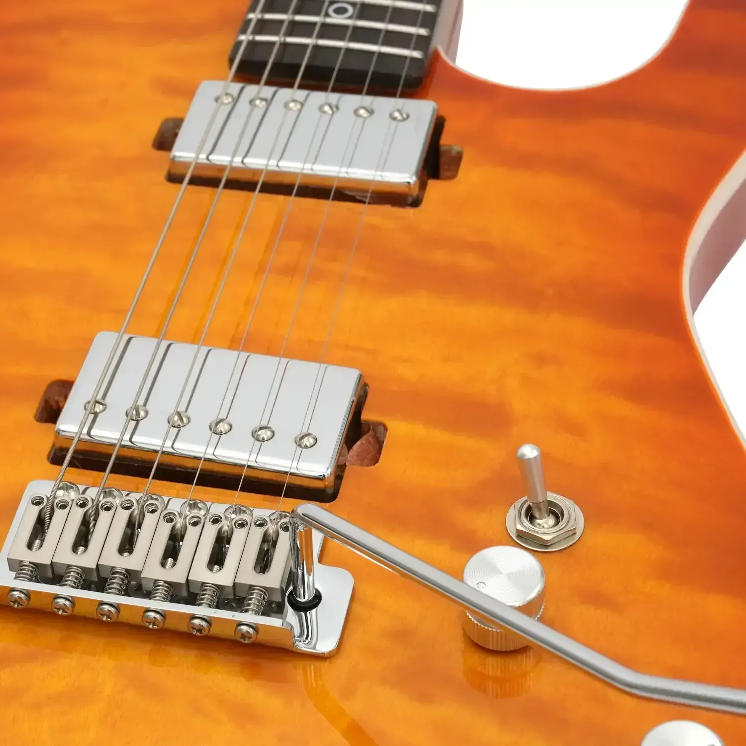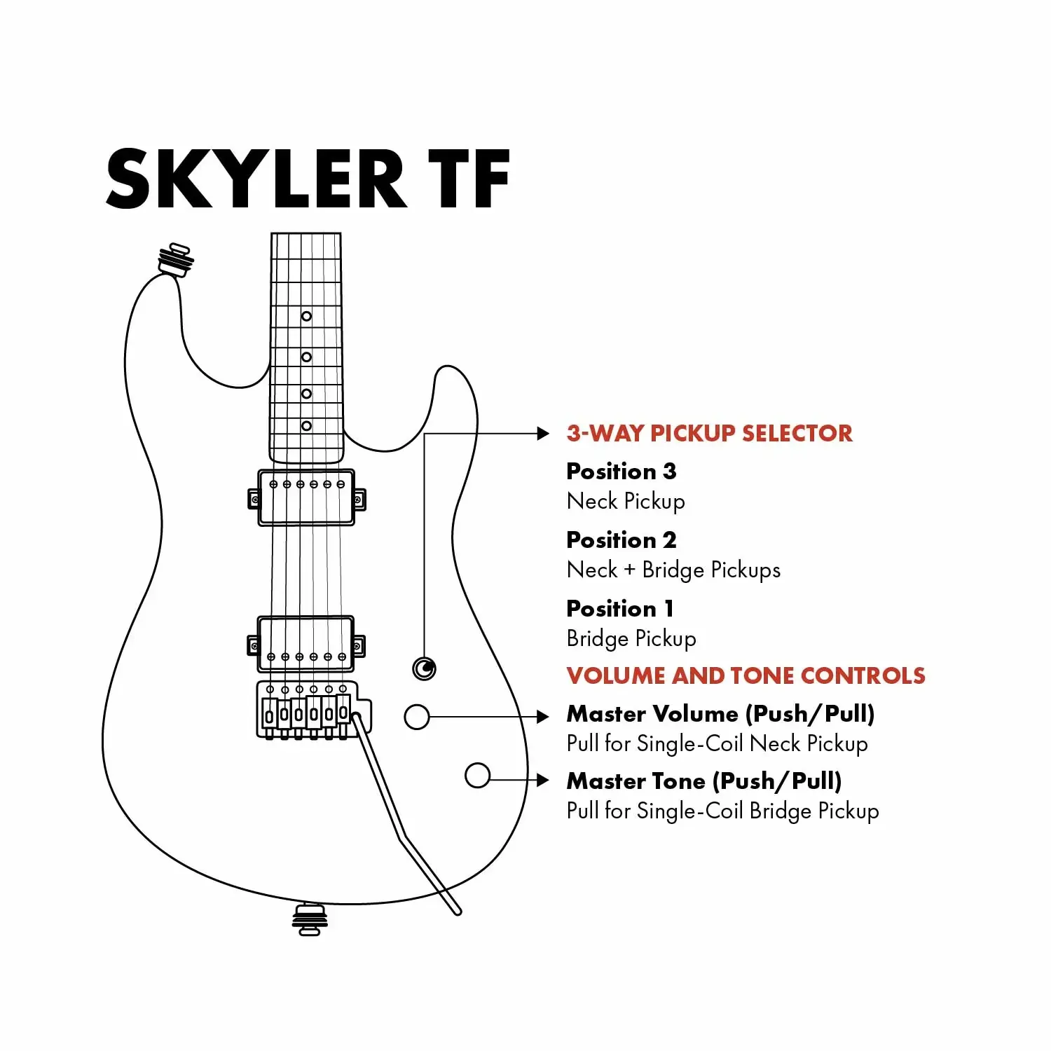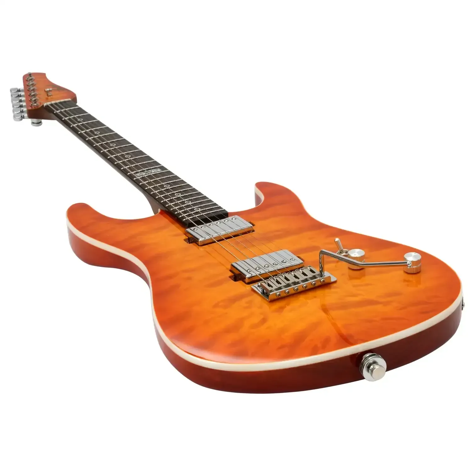Much like its less-flashy little brother, the 15th Anniversary Skyler features a C-shaped quartersawn roasted maple neck, rosewood fretboard, and 22 stainless-steel frets. At a 14-inch radius, this is an ergonomic, lightning-quick neck perfect for the virtuosos amongst you! High-grade, 19:1 ratio locking tuners and a 42mm bone nut ensure your tuning remains incredibly stable, while the included strap locks ensure you can headbang to your heart's content, safe in the knowledge that the limited edition Tiger Flame quilted maple top remains unsullied by the rigours of the road! Like the rest of our range, the 15th Anniversary edition of the Skyler has been painstakingly designed to perfectly balance professional quality with our famous affordability - the same ethos that has carried us since our first guitar rolled off the line all those years ago.