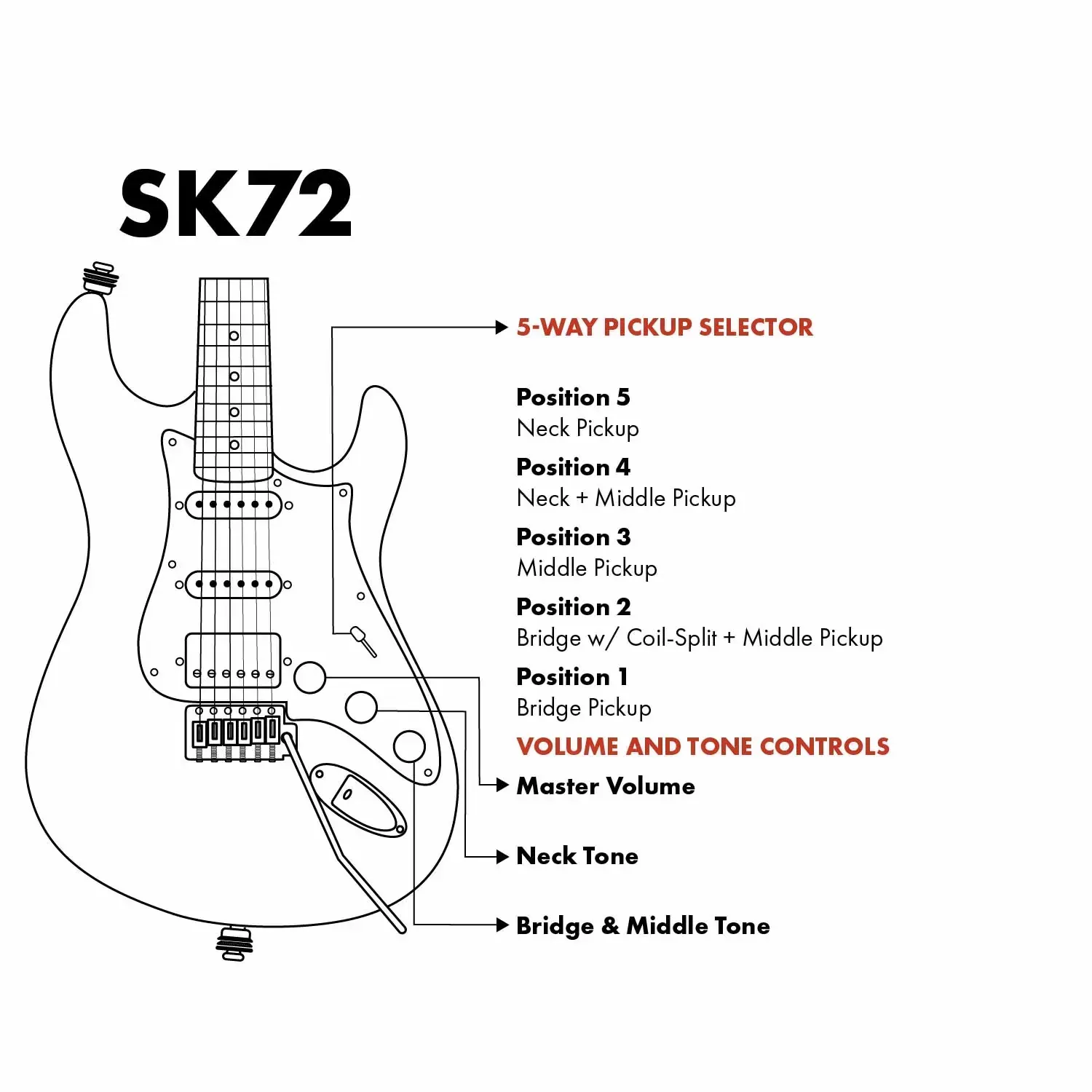 We introduced the Artist AS72 and Skyler models earlier in the year to vigorous demand for more, so it's only right we continue our anniversary range with a very special edition that combines these two epic guitars! With the HSS configuration and high-grade electronics of the AS72, and the unique offset body styling of the Skyler, the SK72 is truly in a league of its own! Featuring the hand-wound Laohao pickups you know and love, the SK72 produces a clear, bell-like high-end and throaty mid-range with plenty of bite, and compresses beautifully to produce rich harmonic distortion tones when pushed. Positions 2 and 4 yield that familiar, out-of-phase strat-style "quack", but if you're ready for more grit, the high-output bridge humbucker is capable of anything from 70s-style classic lead tones to modern, tight chugging - if that's your cup of tea!