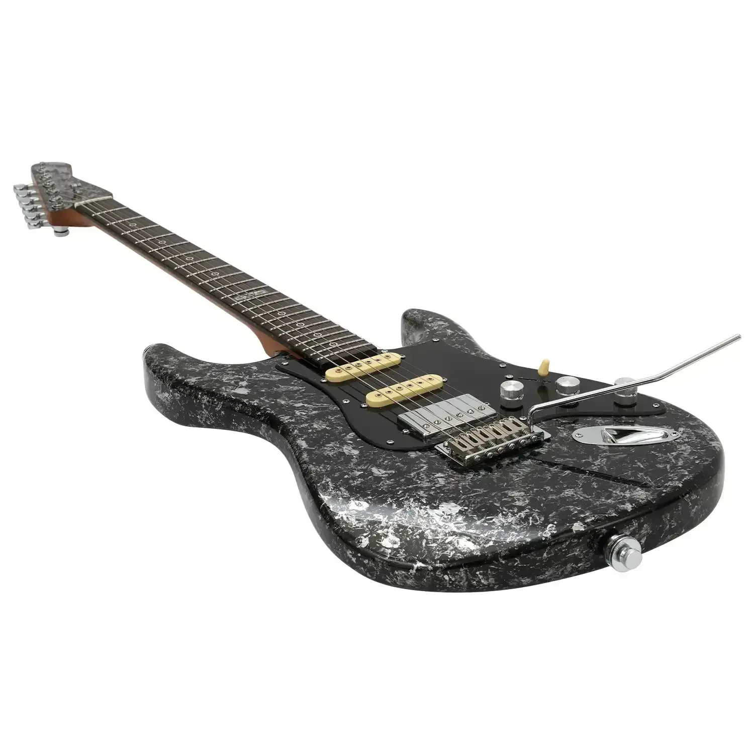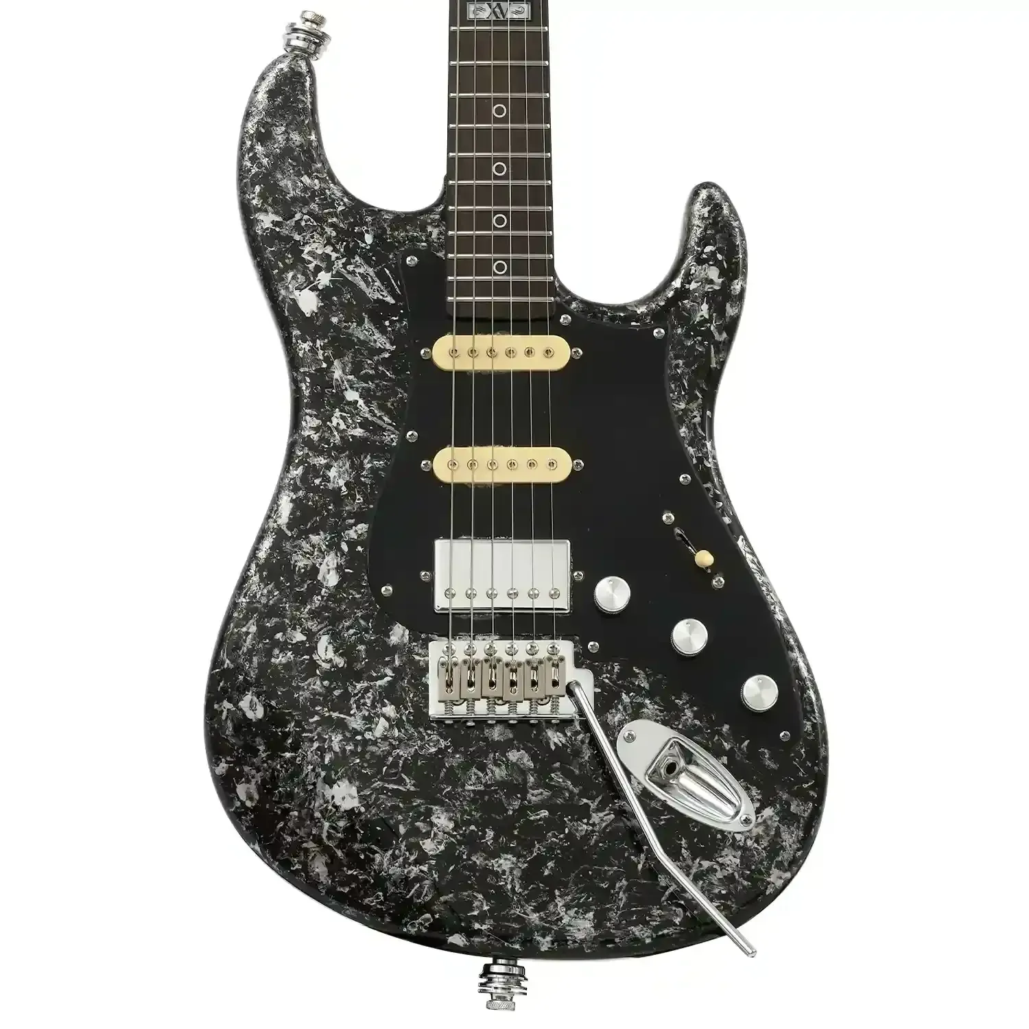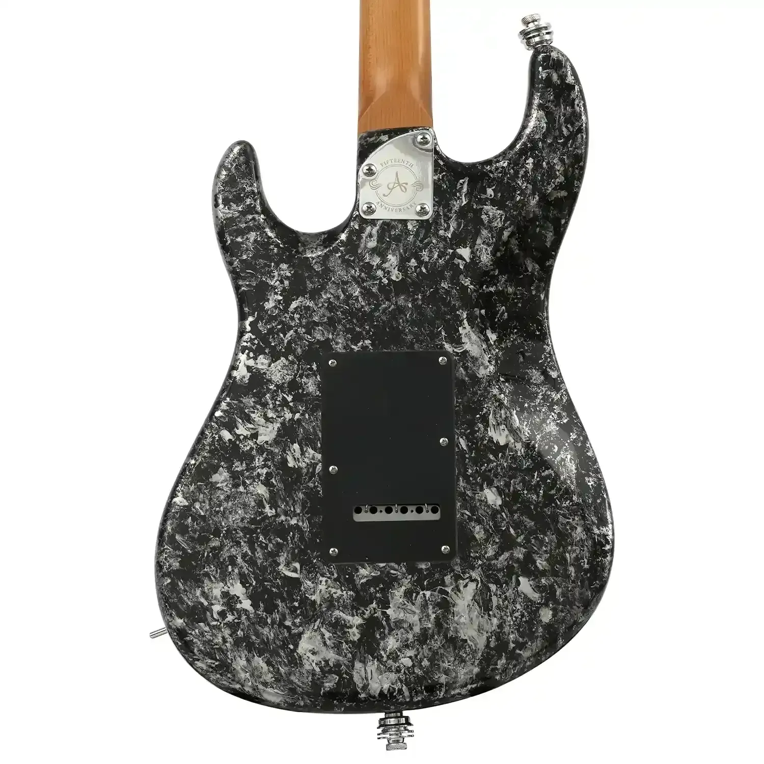 The Artist SK72 features a C-shaped quartersawn roasted maple neck, rosewood fretboard, and 22 stainless-steel frets. At a 14-inch radius, this is an ergonomic, lightning-quick neck perfect for the virtuosos amongst you! High-grade, 19:1 ratio locking tuners and a 42mm bone nut ensure your tuning remains incredibly stable, while the included strap locks ensure you can headbang to your heart's content, safe in the knowledge that the limited edition black-and-white Obsidian finish remains unsullied by the rigours of the road! Like the rest of our range, the 15th Anniversary edition of the Artist SK72 has been painstakingly designed to perfectly balance professional quality with our famous affordability - the same ethos that has carried us since our first guitar rolled off the line all those years ago.