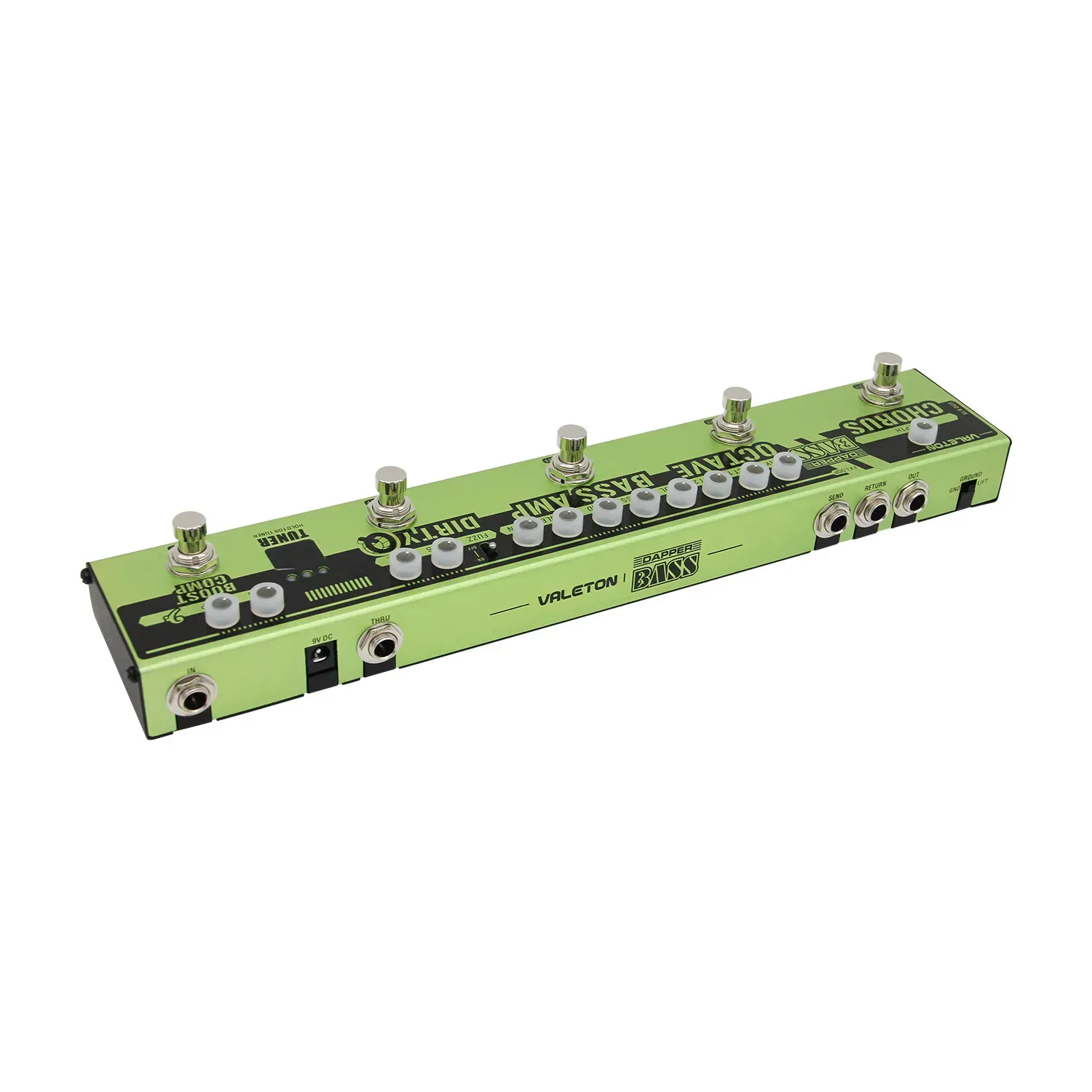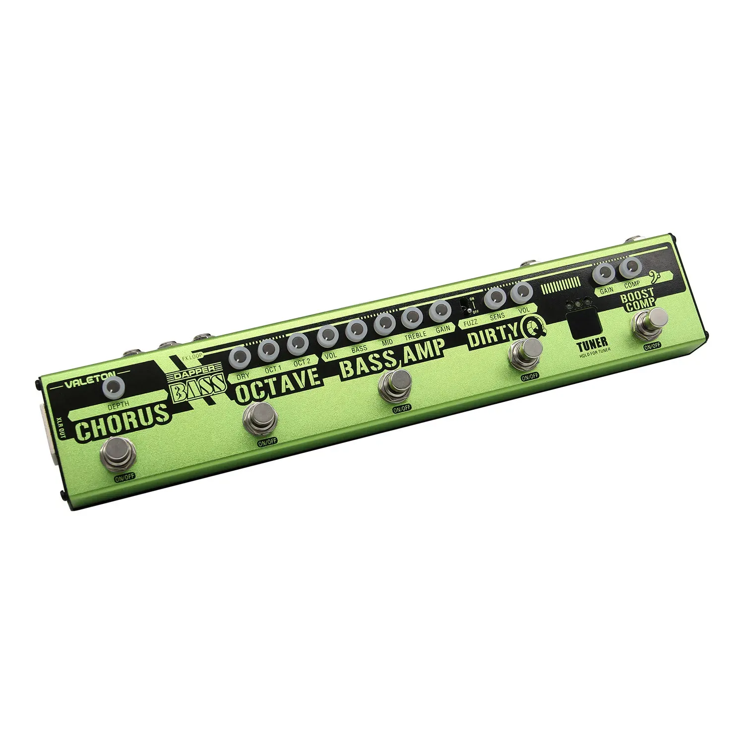 The Dapper Bass by Valeton is an all-inclusive effects strip for bass. With every commonly used bass effect, easily controllable and usable, the Dapper Bass provides everything you need to be a professional gigging bassist in one package, and is the perfect solution to a portable, reliable, and gig-ready rig! With a high-quality tuner, multiple routing options, and even a cab-sim-enabled headphone port for silent practice, the Dapper Bass offers everything a bassist needs for almost any genre.