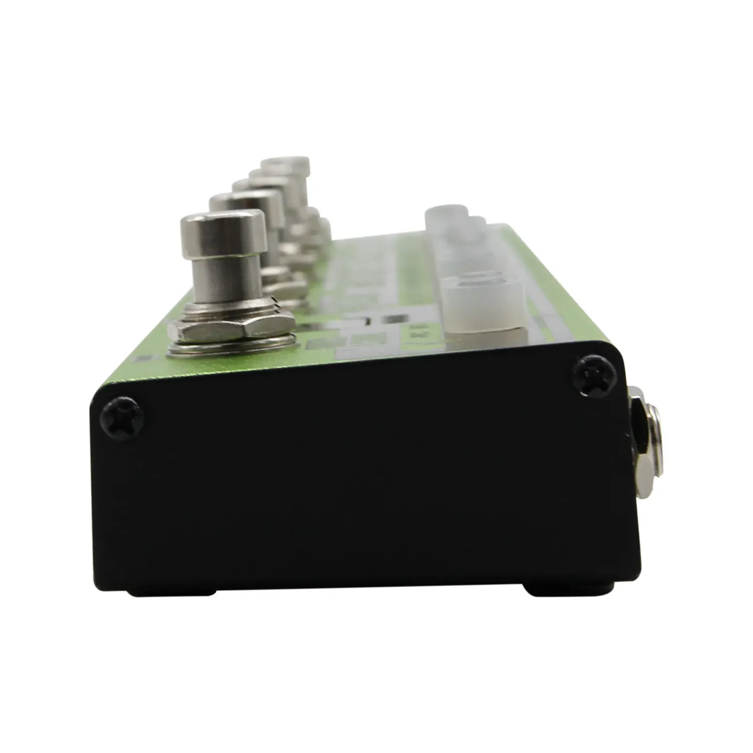 The fast and accurate tuner uses an LED display to be clear and visible on any stage. The note name appears on the screen, the dot on the bottom right of the screen indicates a sharp note, and the pitch accuracy is indicated by the LEDs. It’s fast to engage and will mute your signal when in use.