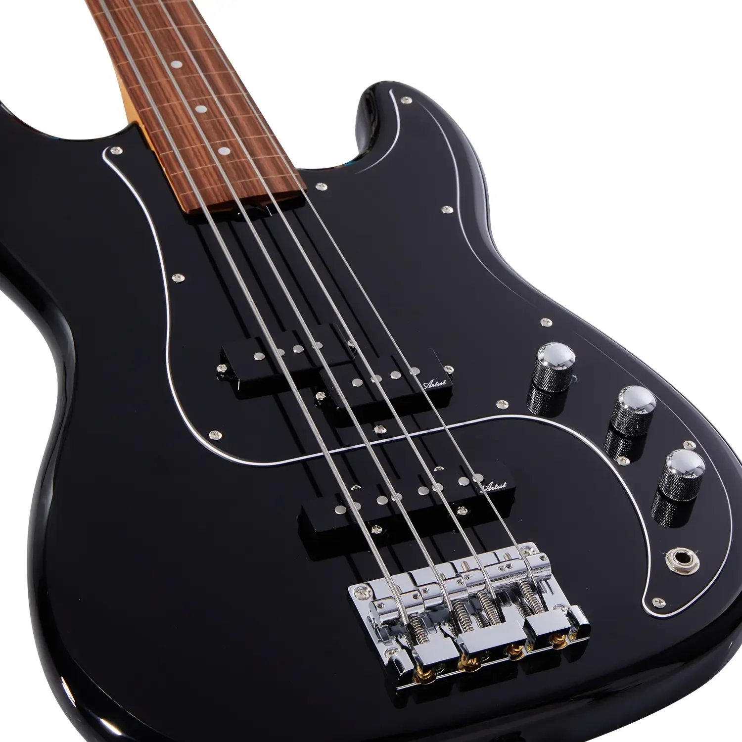 Jazzy specs meet rock 'n' roll attitude on this sleek black beauty! For the low-end purists and tone chasers alike, the Artist APJ4F might sound closer to an upright double bass, but with a sleek black roasted poplar body, 3-ply black pickguard, and Bolivian rosewood fretboard, you'll be sneaking The Lick into a rock setlist without anyone suspecting a thing!