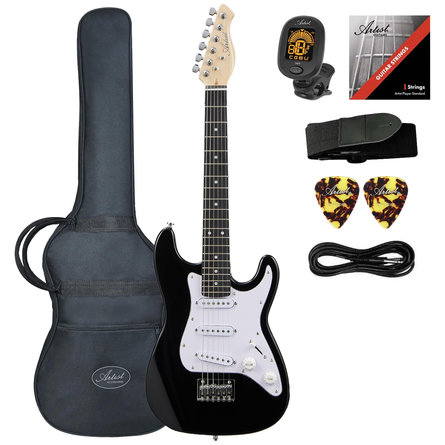 The Artist AS34 is a 3/4 scale electric guitar that far exceeds the quality of others in the same price range. With a Poplar and Basswood body, Maple neck, and a smooth Eco-Rosewood fretboard, the AS34 is an awesome-looking instrument that is built to withstand the rigours of being owned by the kids!