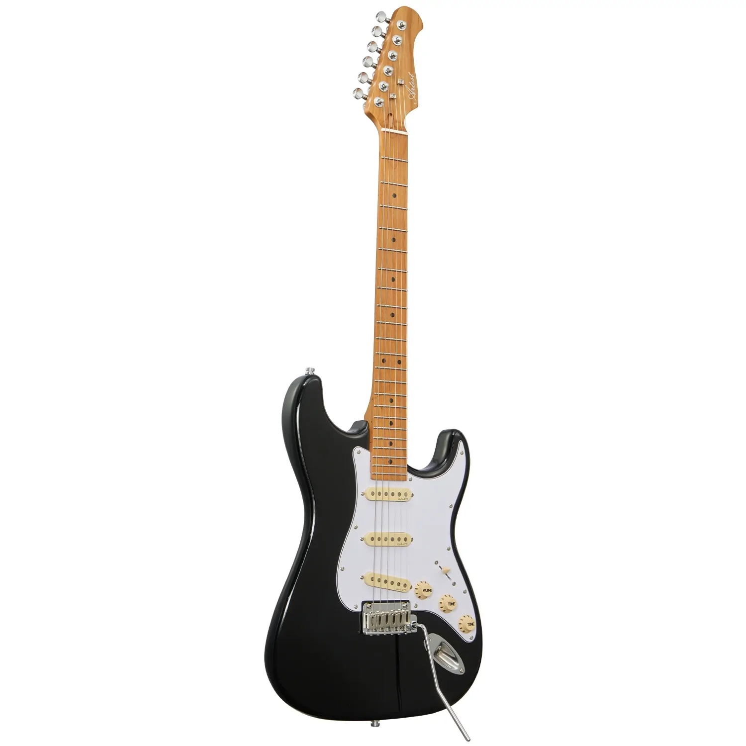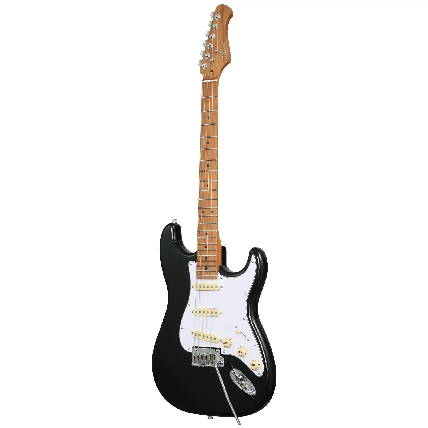With a solid alder body finished in classic black gloss, a satin-finished light roasted maple neck and a 9.5" radius maple fretboard, the AS50 brings that comfortingly familiar vintage mojo to the Artist range. The classic C-shape neck carve has more than enough shoulder to grab hold of, though flatter than the baseball-bat chunk for which similar vintage models are somewhat infamous. A 42mm bone nut, dual string-trees, high-grade locking tuners, and a modern two-point tremolo ensure tuning stability even with the heaviest of trem arm abuse, as well as glorious sustain.