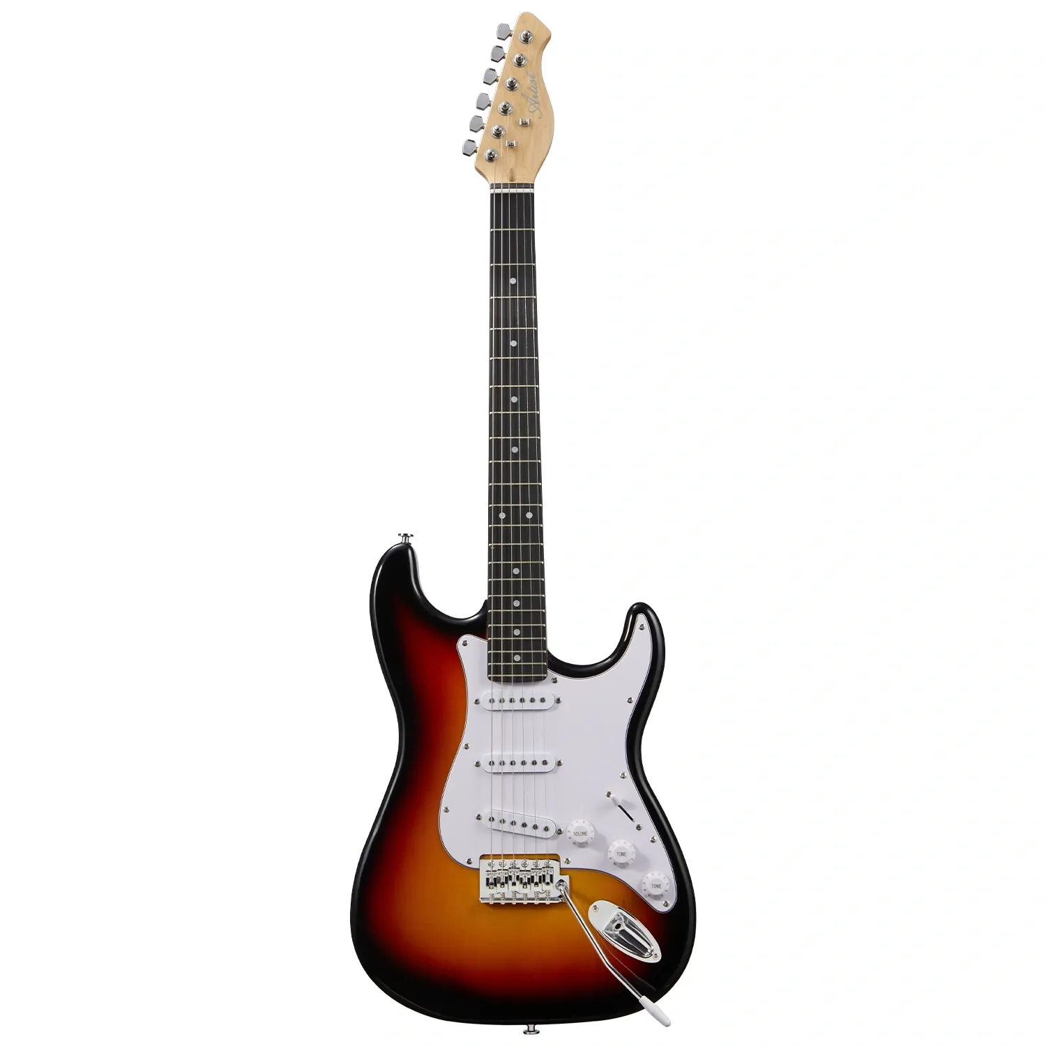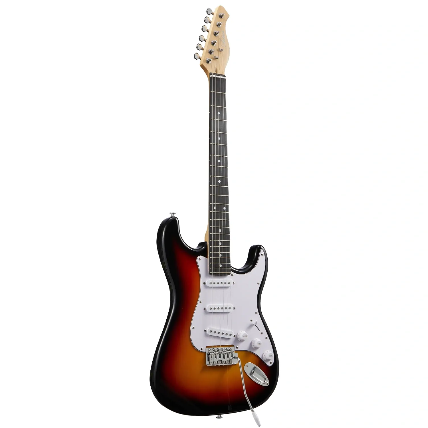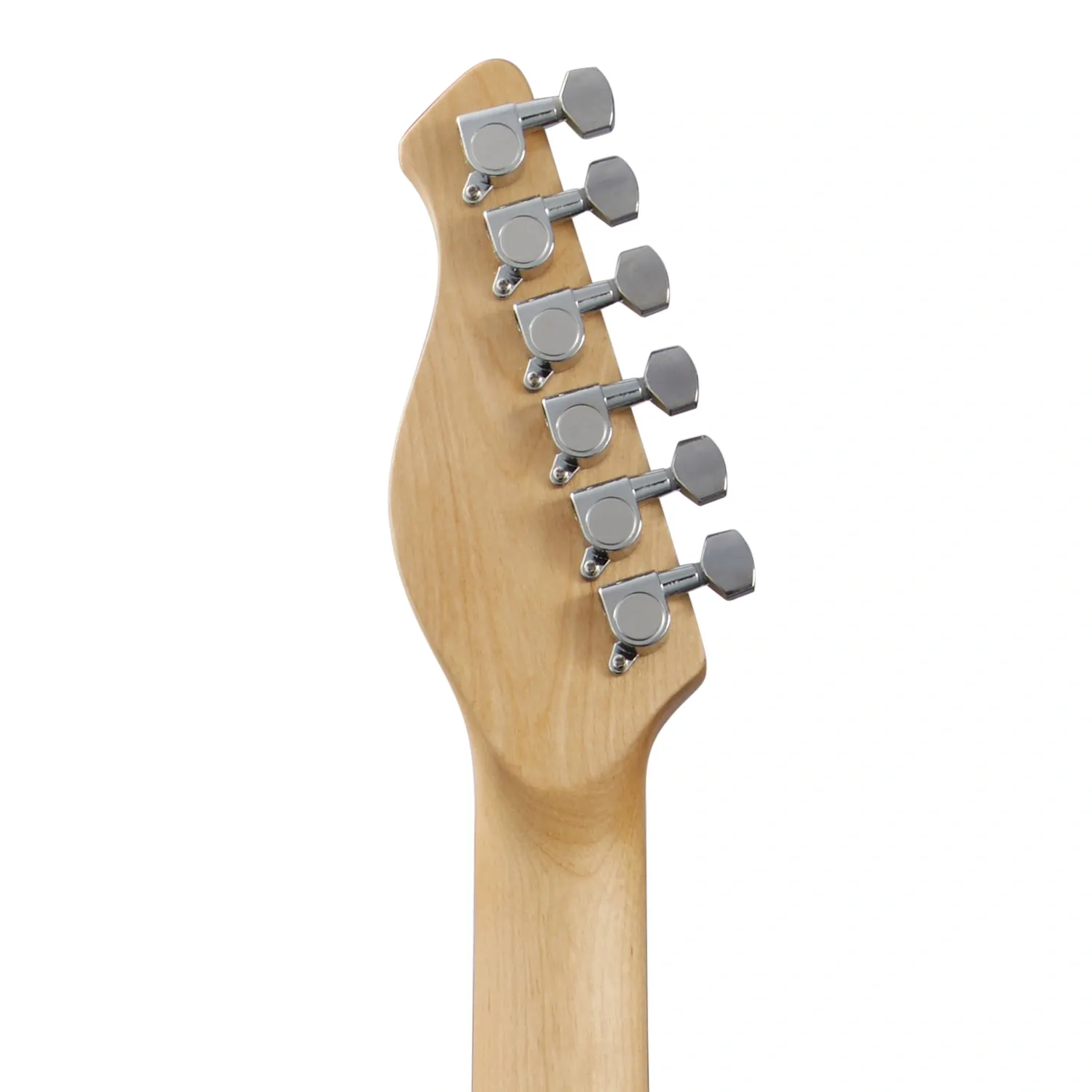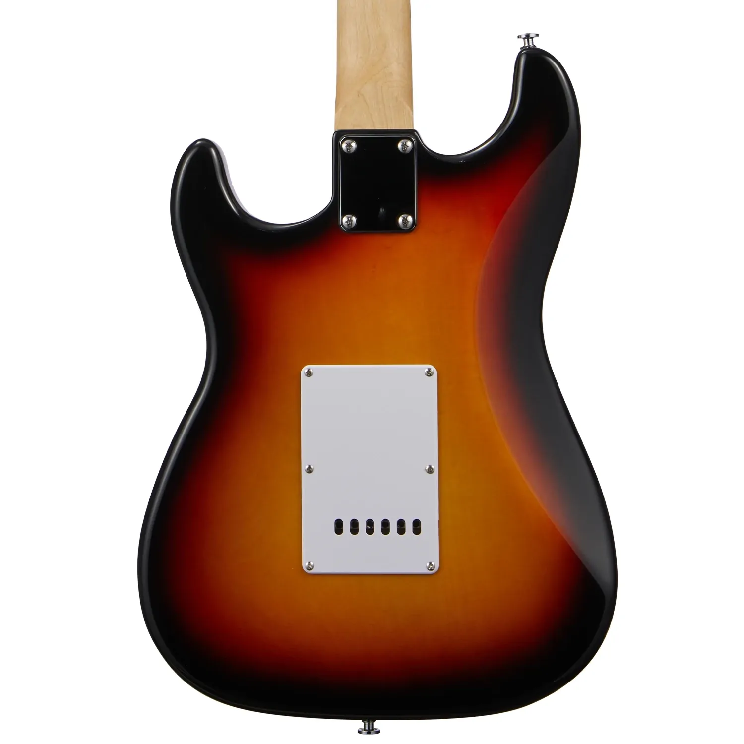 The guitar features a solid Poplar body with a sleek basswood veneer and various colour options, letting you pick which look is right for you! Featuring a one-piece maple neck, this guitar is built for comfort and ease of play. The C-shape neck profile and 22 frets are perfect for beginners, offering a balanced feel and excellent playability. The eco-rosewood fretboard offers smooth action for both fretting and soloing.