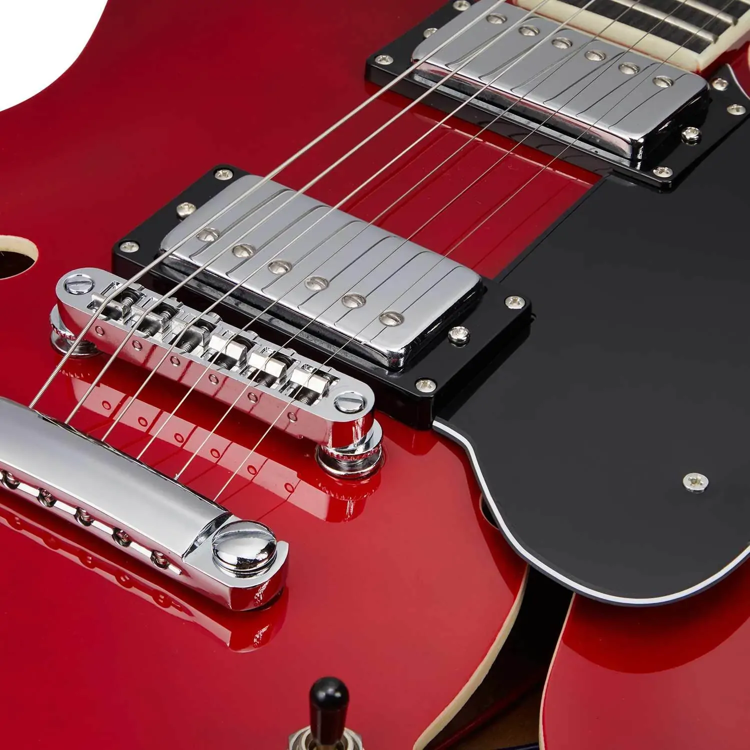 The body features a stunning translucent cherry finish, with tasteful cream binding evoking the very best of 50s guitar styling. With 22 frets along an ultra-stable, 12" radiused eco-rosewood fretboard, and an immediately familiar "C"-shaped neck profile, there's enough beef under the hands for those who prefer a more vintage feeling neck, without the chunk of the 'baseball bat' necks of old. With set-neck construction, the Cherry58 provides excellent sustain and resonance, making it an ideal instrument for blues, jazz, and rock players looking for rich, expressive tones.