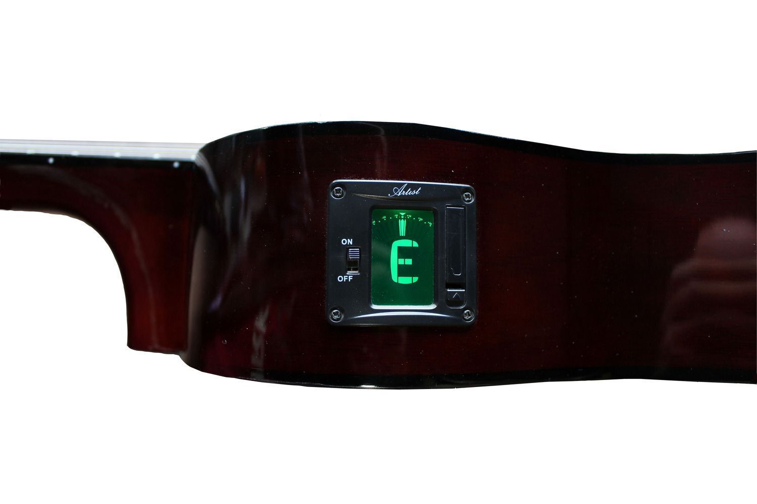 It has a Low String Action (all our guitars are set-up at the factory for optimum beginner playing level). String action is the measurement from the top of the 12th fret to the bottom of the string. This is very important because a guitar with a high action is hard to play, a guitar with too low an action will buzz and sound bad. Artist Guitars are set up at the factory for the optimum level for a beginner.