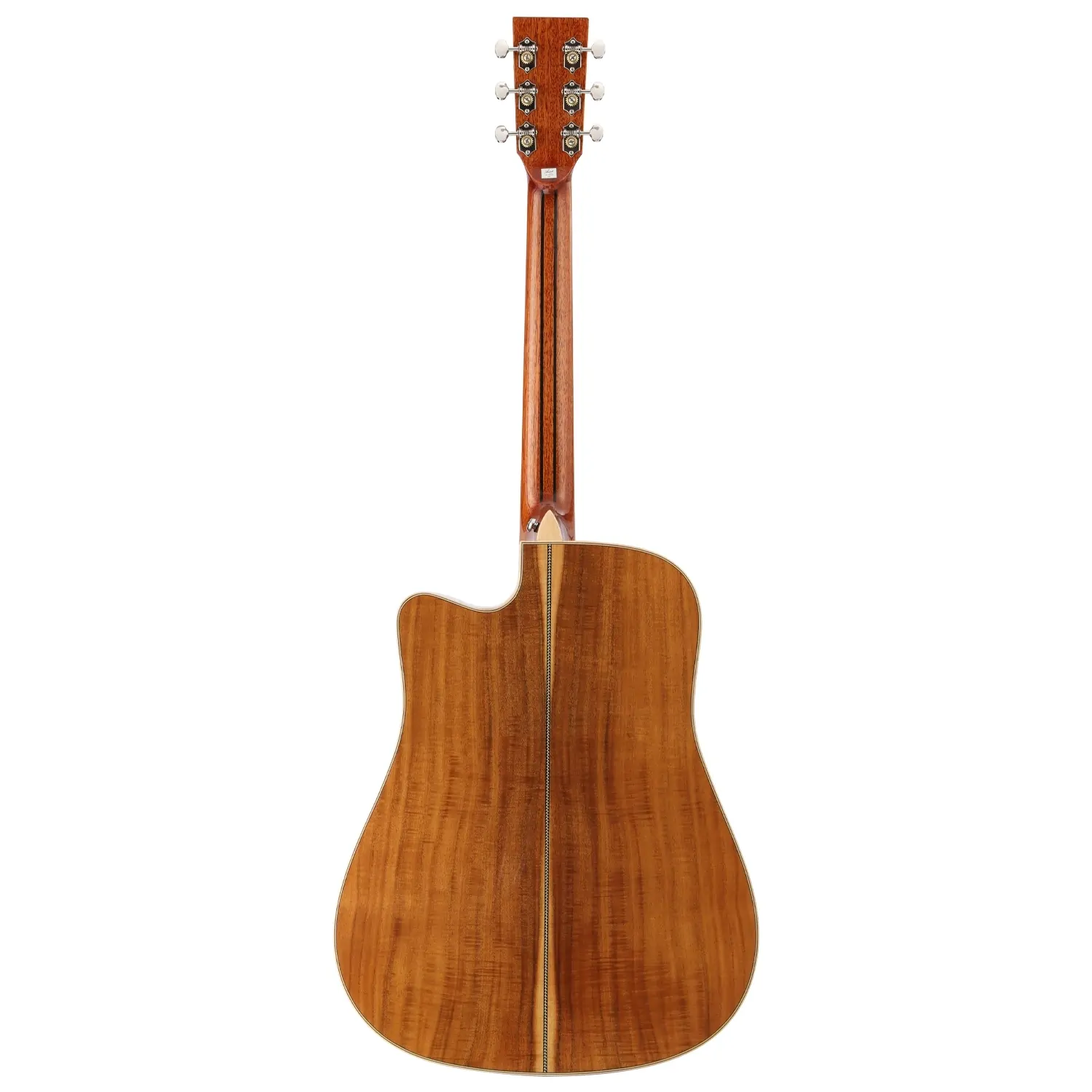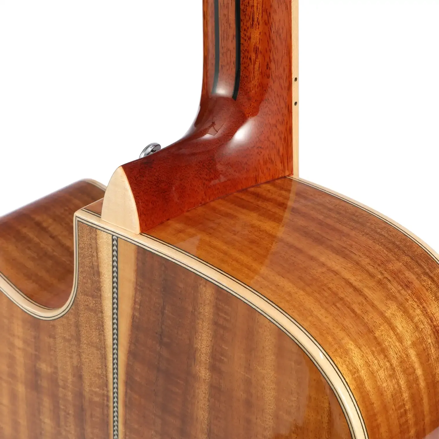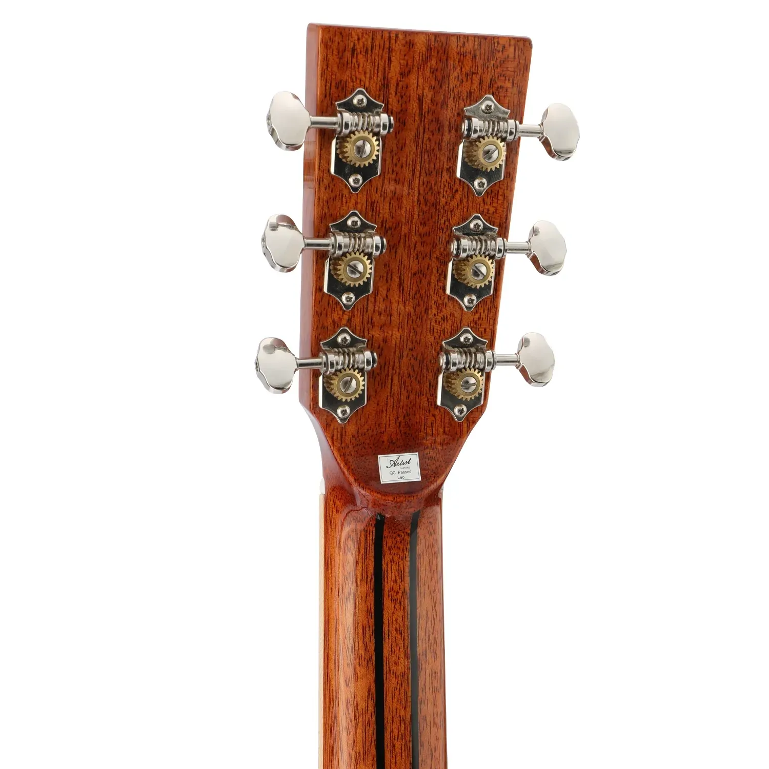 All the bracing on this model has been constructed from the finest woods available. European Spruce was selected for the top bracing, back centre bracing, and reverse kerfing, while African Congo Mahogany braces the solid Acacia back, as the high-grade Ebony bridge is beautifully complemented by Ebony bridge pins. After an intensive and detailed testing process, a Tusq saddle was selected for its unparalleled tonal richness. Offering sweeter, more defined harmonics in the mid-treble frequencies when compared to bone and ivory, alongside a noticeable increase in sustain, the Artist Guitars team has carefully tested every point of contact between the strings and the guitar to ensure maximum resonance and a truly unique, vibrant sound. In combination with a 44.5mm bone nut and high-ratio Der Jung tuning machines, the result is a guitar with unparalleled tuning stability and deep resonance across the entire frequency range.