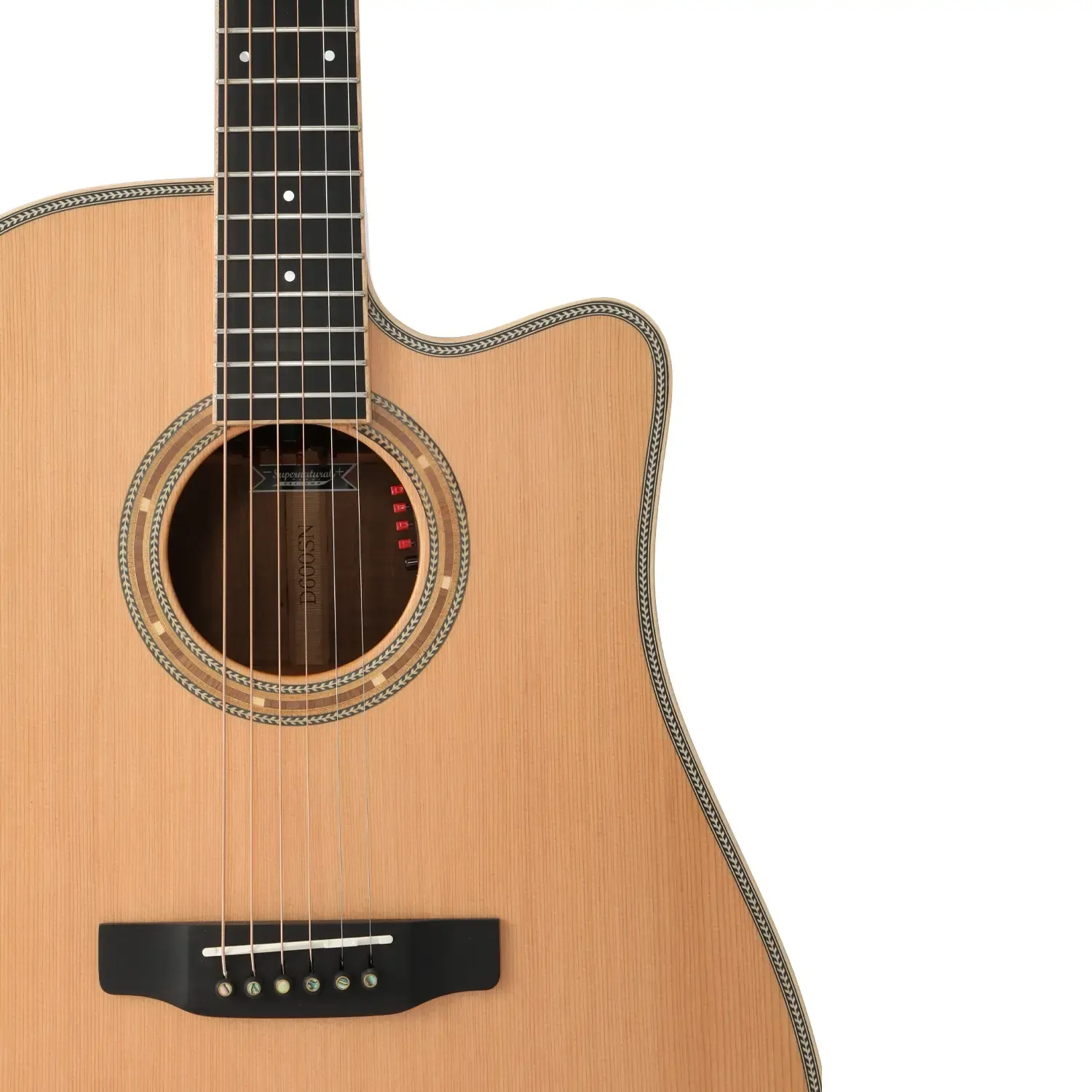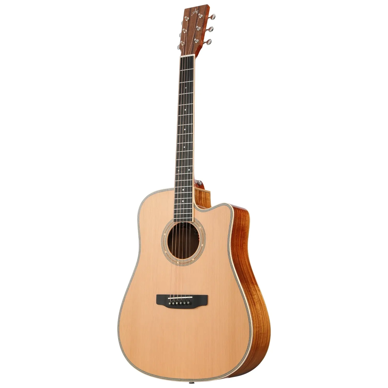 Handbuilt by the same team of 5 expert luthiers who lovingly crafted the Artist GG1EQ, the Artist D600SN features a AAA-grade solid Cedar top and stunning solid Acacia back and sides, producing a deeper, more mellow tone when compared with a brighter wood such as Spruce. If you tend to gravitate toward warmer-toned acoustic guitars, you'll find all the mid-range you need with a single strum. The Mahogany neck is topped with a stunning dark Ebony fingerboard, tastefully bound with Maple along the length of 20 frets, constructed from 25% nickel for long-lasting durability.