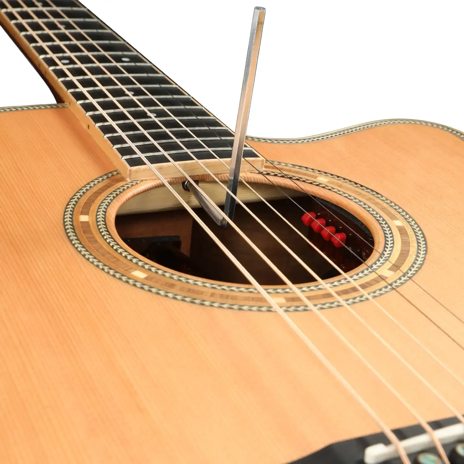 The Supernatural Pickup System represents a significant advancement in achieving natural acoustic sound for live performance, faithfully reproducing the full nuance and tonal character of the guitar when connected to an amplifier or stage rig. This system is comprised of two primary sensors integrated into a preamplifier, with each sound profile meticulously calibrated to correspond with the specific design, wood, and performance characteristics of each individual guitar model. These profiles are pre-programmed into the preamplifier for convenient recall. The system offers four sound presets, catering to a wide range of guitarists, venues, and playing styles, along with an onboard 3-band EQ for precise tonal adjustments to suit the acoustic properties of the venue. The Supernatural Pickup System delivers unparalleled realism and flexibility, making it an exceptional choice for both live performances and studio recordings.