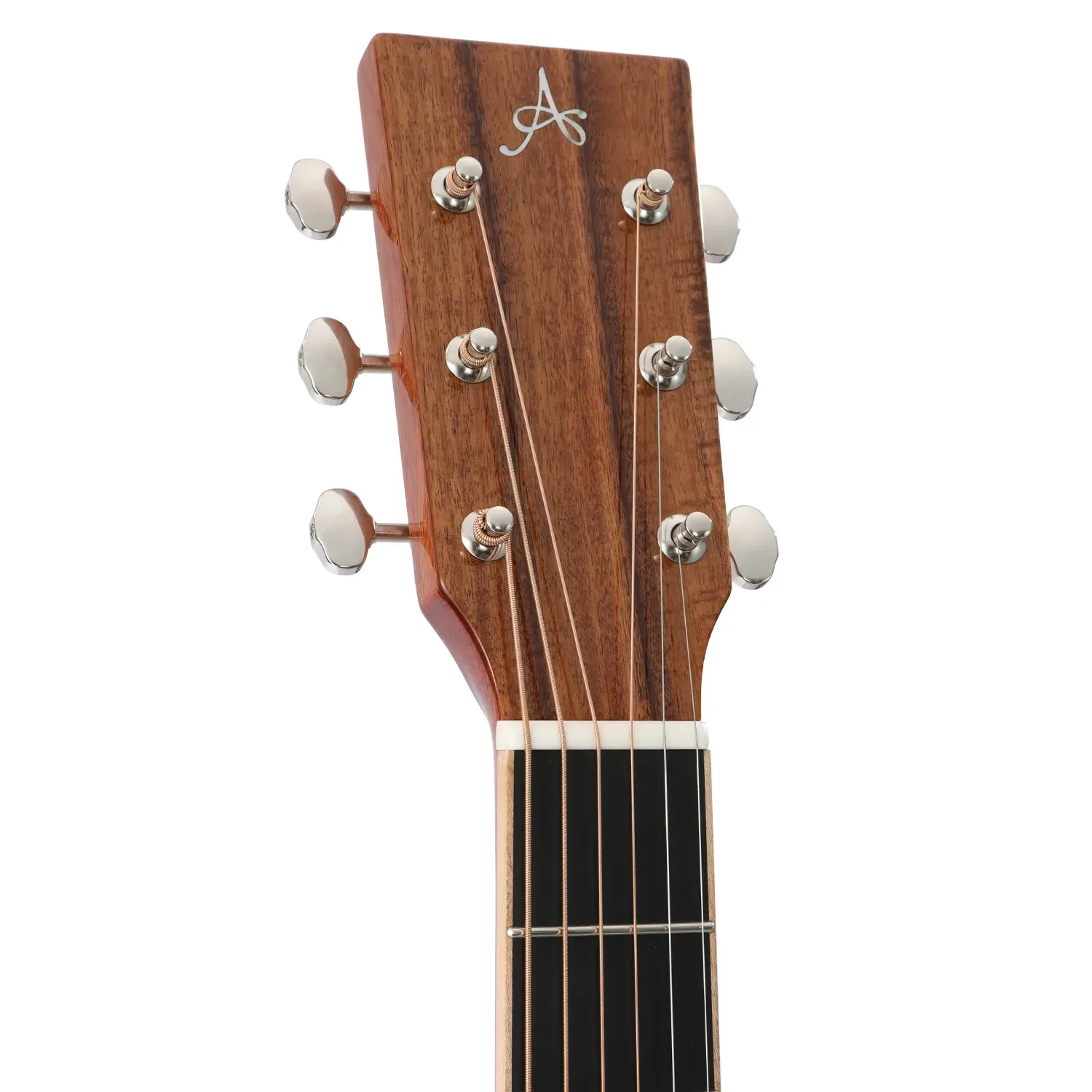 All the bracing on this model has been constructed from the finest woods available. European Spruce was selected for the top bracing, back centre bracing, and reverse kerfing, while African Congo Mahogany braces the solid Acacia back, as the high-grade Ebony bridge is beautifully complemented by Ebony bridge pins. After an intensive and detailed testing process, a Tusq saddle was selected for its unparalleled tonal richness. Offering sweeter, more defined harmonics in the mid-treble frequencies when compared to bone and ivory, alongside a noticeable increase in sustain, the Artist Guitars team has carefully tested every point of contact between the strings and the guitar to ensure maximum resonance and a truly unique, vibrant sound. In combination with a 44.5mm bone nut and high-ratio Der Jung tuning machines, the result is a guitar with unparalleled tuning stability and deep resonance across the entire frequency range.