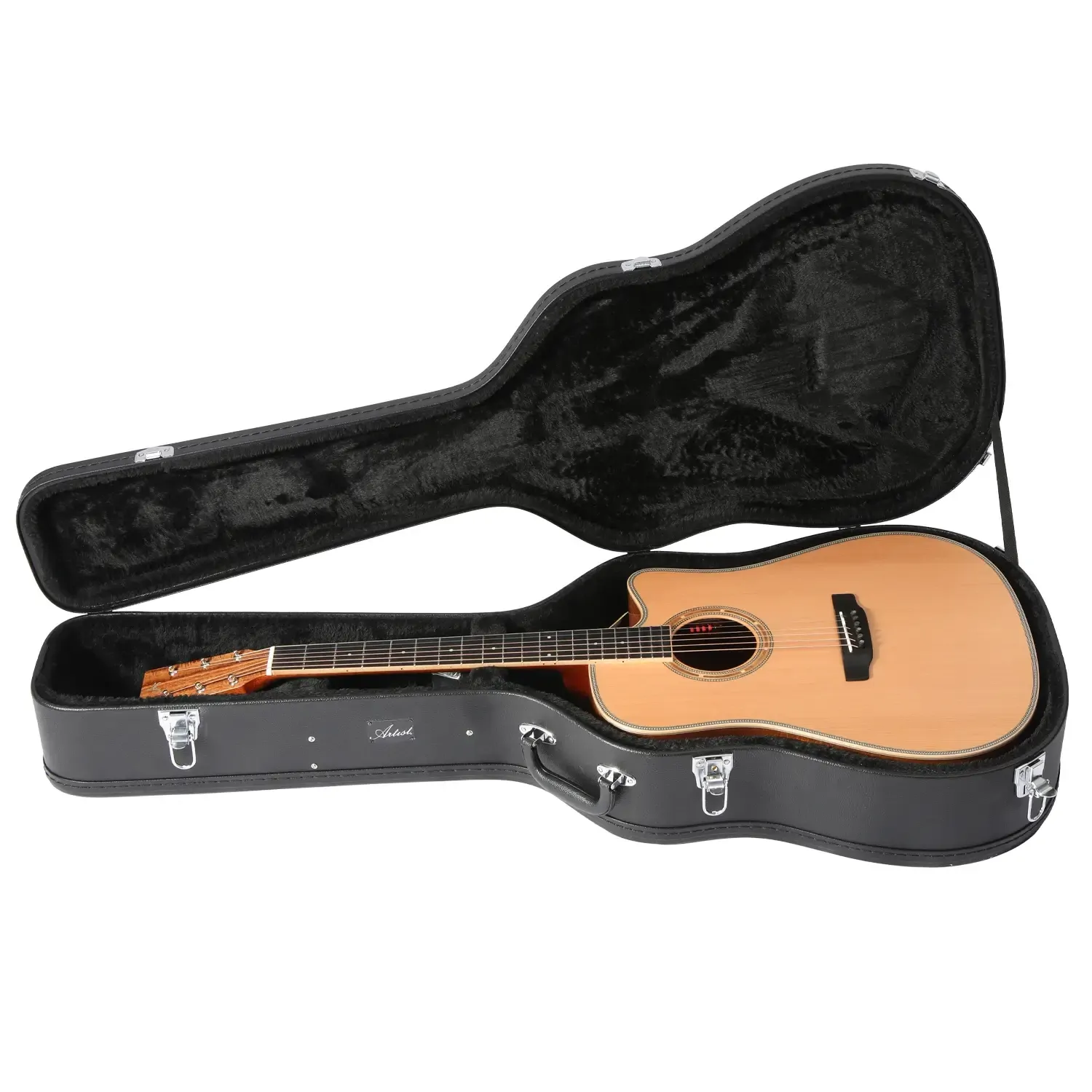 Handbuilt by the same team of 5 expert luthiers who lovingly crafted the Artist GG1EQ, the Artist D600SN features a AAA-grade solid Cedar top and stunning solid Acacia back and sides, producing a deeper, more mellow tone when compared with a brighter wood such as Spruce. If you tend to gravitate toward warmer-toned acoustic guitars, you'll find all the mid-range you need with a single strum. The Mahogany neck is topped with a stunning dark Ebony fingerboard, tastefully bound with Maple along the length of 20 frets, constructed from 25% nickel for long-lasting durability.