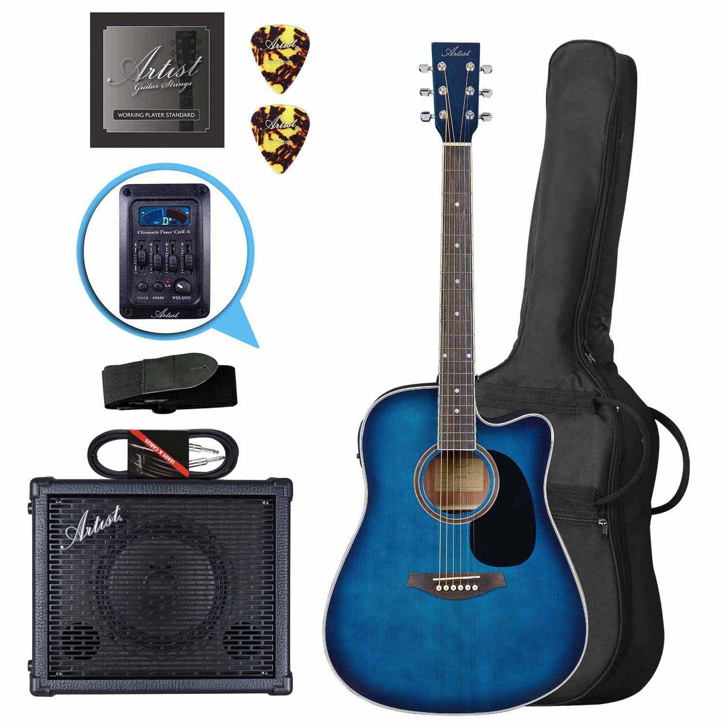 - 1 x Artist LSPCEQTBB Beginner Acoustic Electric Guitar Pack - Blue