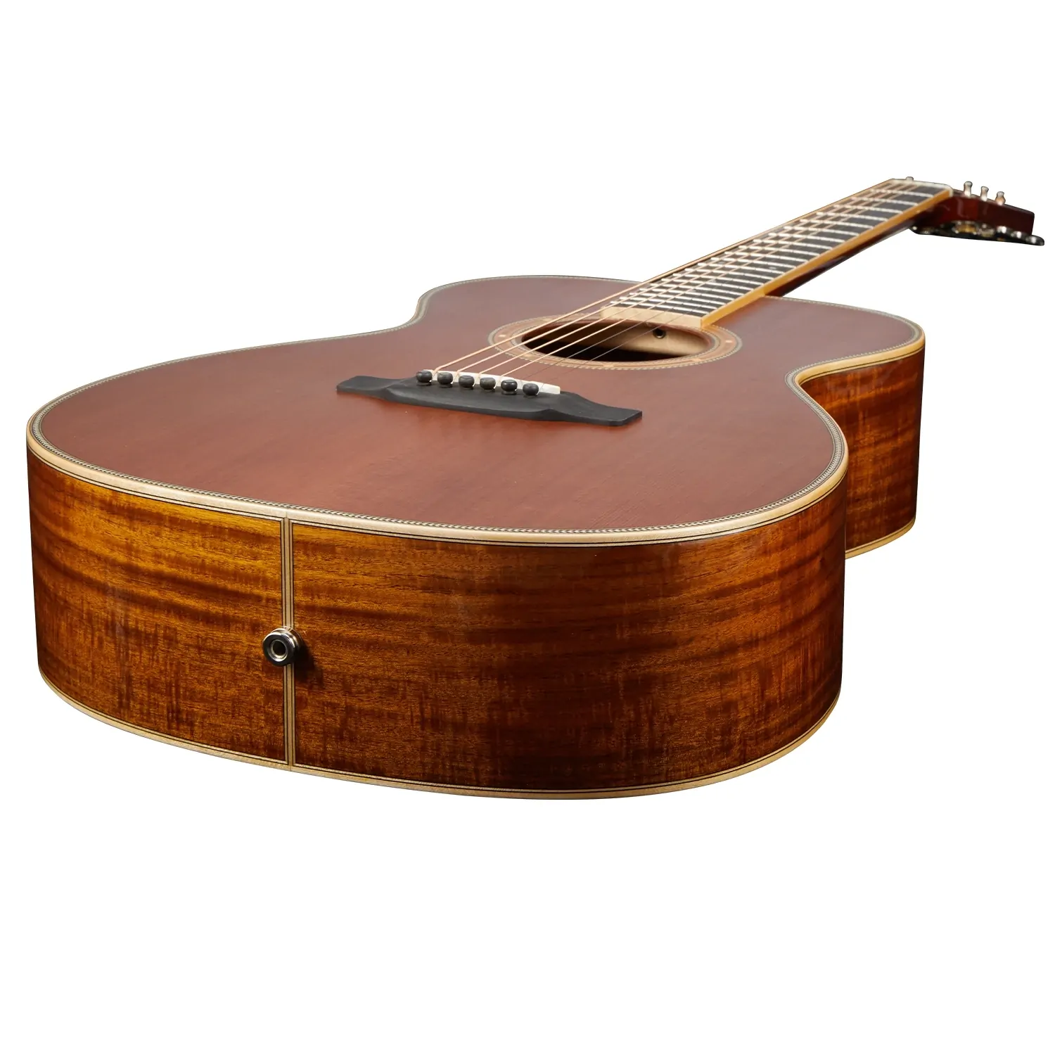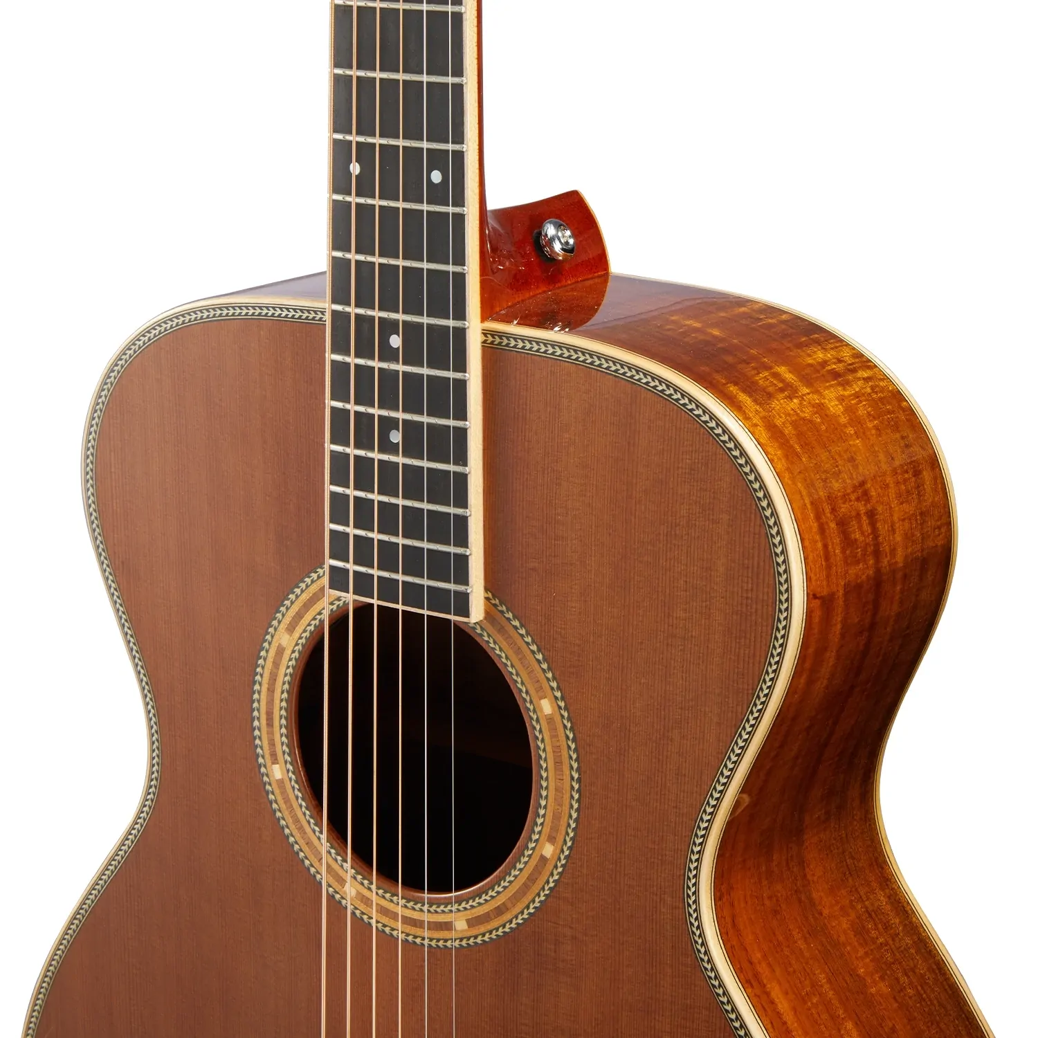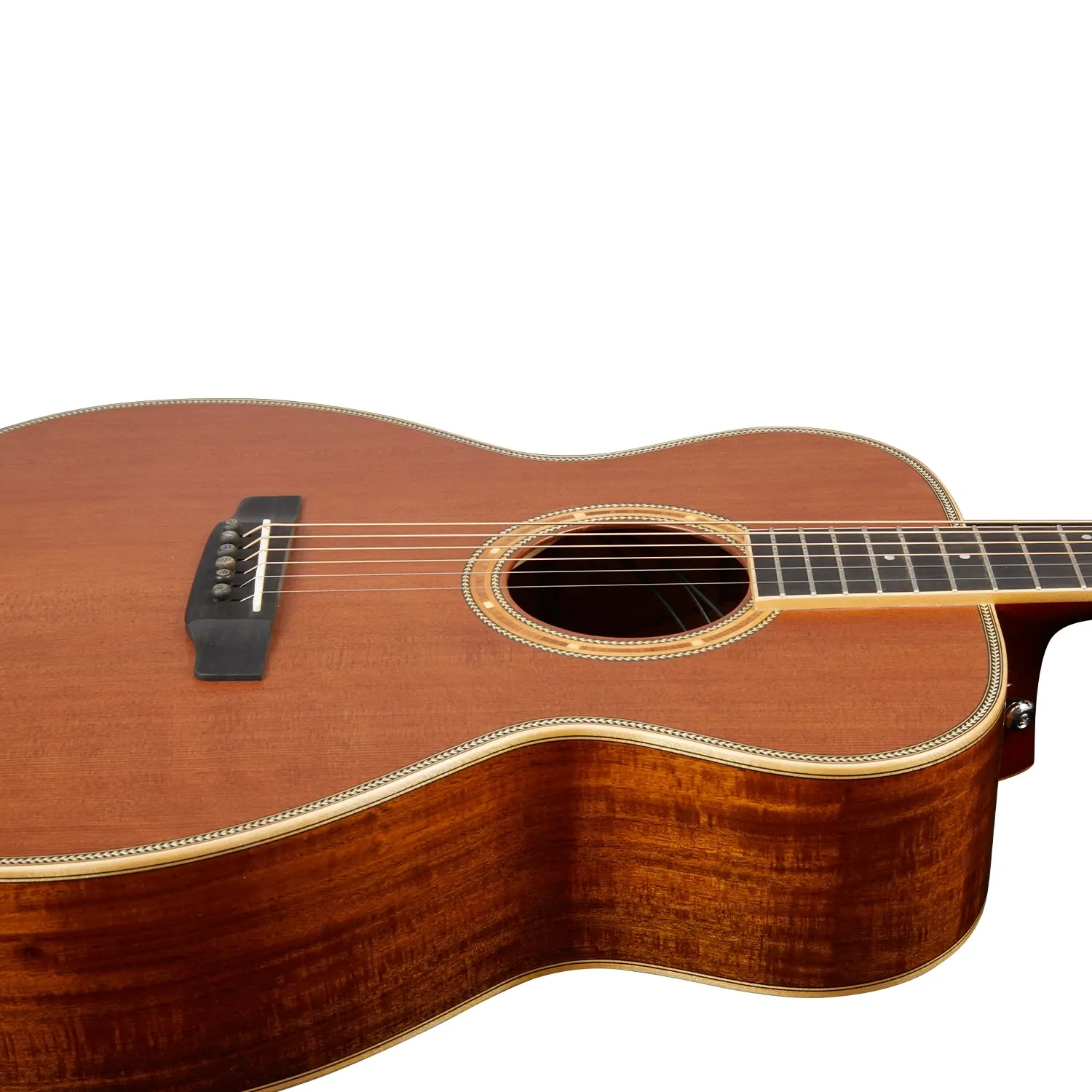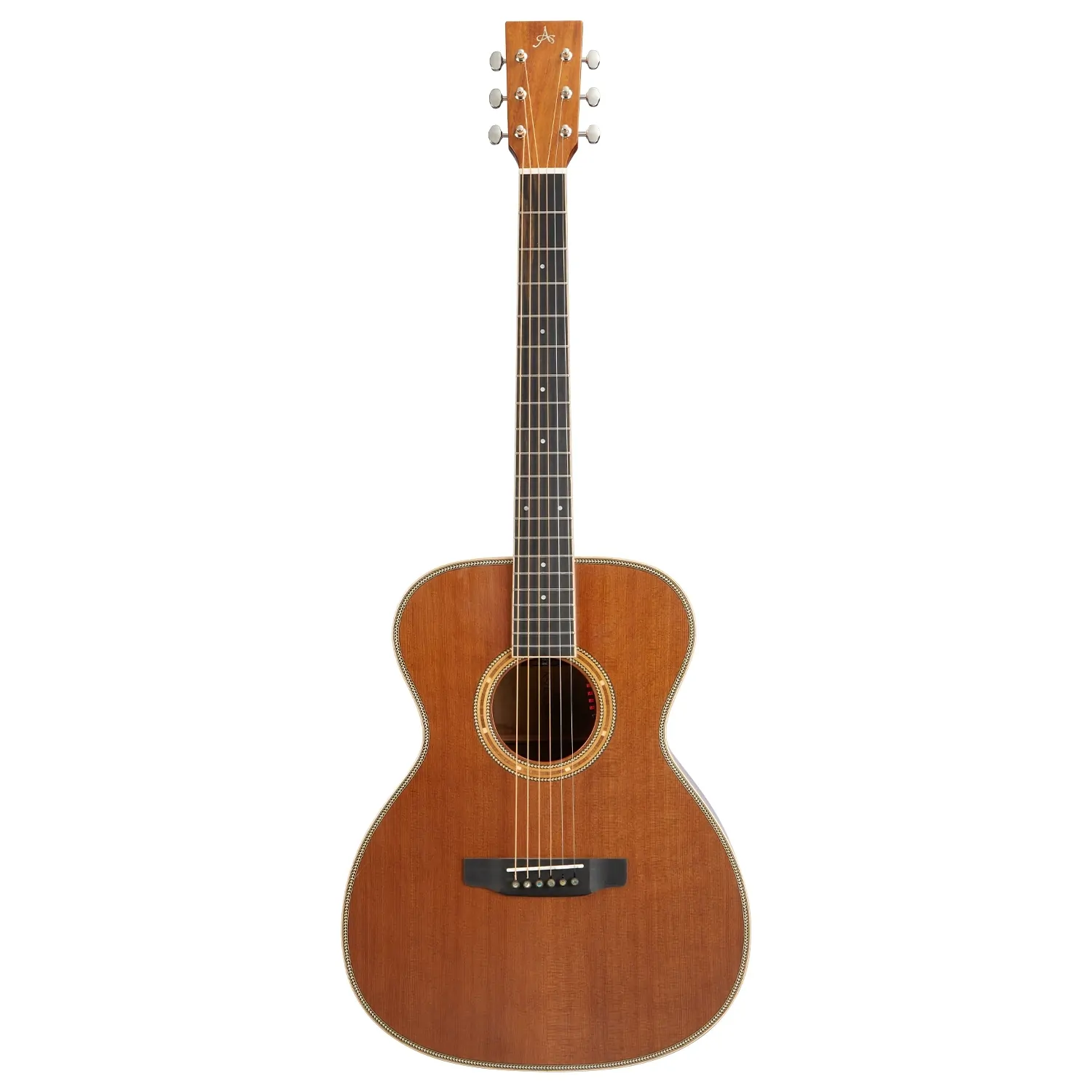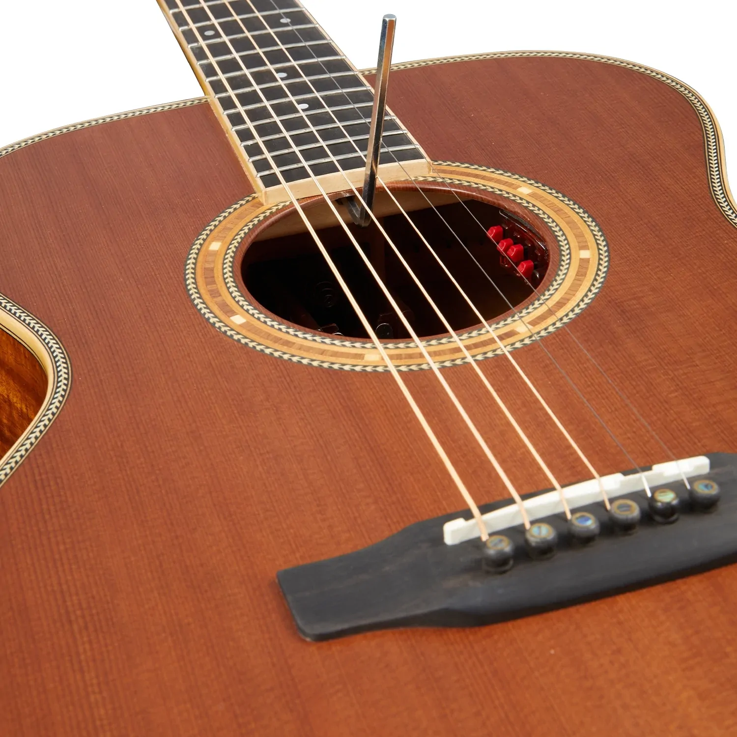 All the bracing on this model has been constructed from the finest woods available. European Spruce was selected for the top bracing, back centre bracing, and reverse kerfing, while African Congo Mahogany braces the solid Acacia back, as the high-grade Ebony bridge is beautifully complemented by Ebony bridge pins. After an intensive and detailed testing process, a Tusq saddle was selected for its unparalleled tonal richness. Offering sweeter, more defined harmonics in the mid-treble frequencies when compared to bone and ivory, alongside a noticeable increase in sustain, the Artist Guitars team has carefully tested every point of contact between the strings and the guitar to ensure maximum resonance and a truly unique, vibrant sound. In combination with a 44.5mm Tusq nut and high-ratio Der Jung tuning machines, the result is a guitar with unparalleled tuning stability and deep resonance across the entire frequency range.