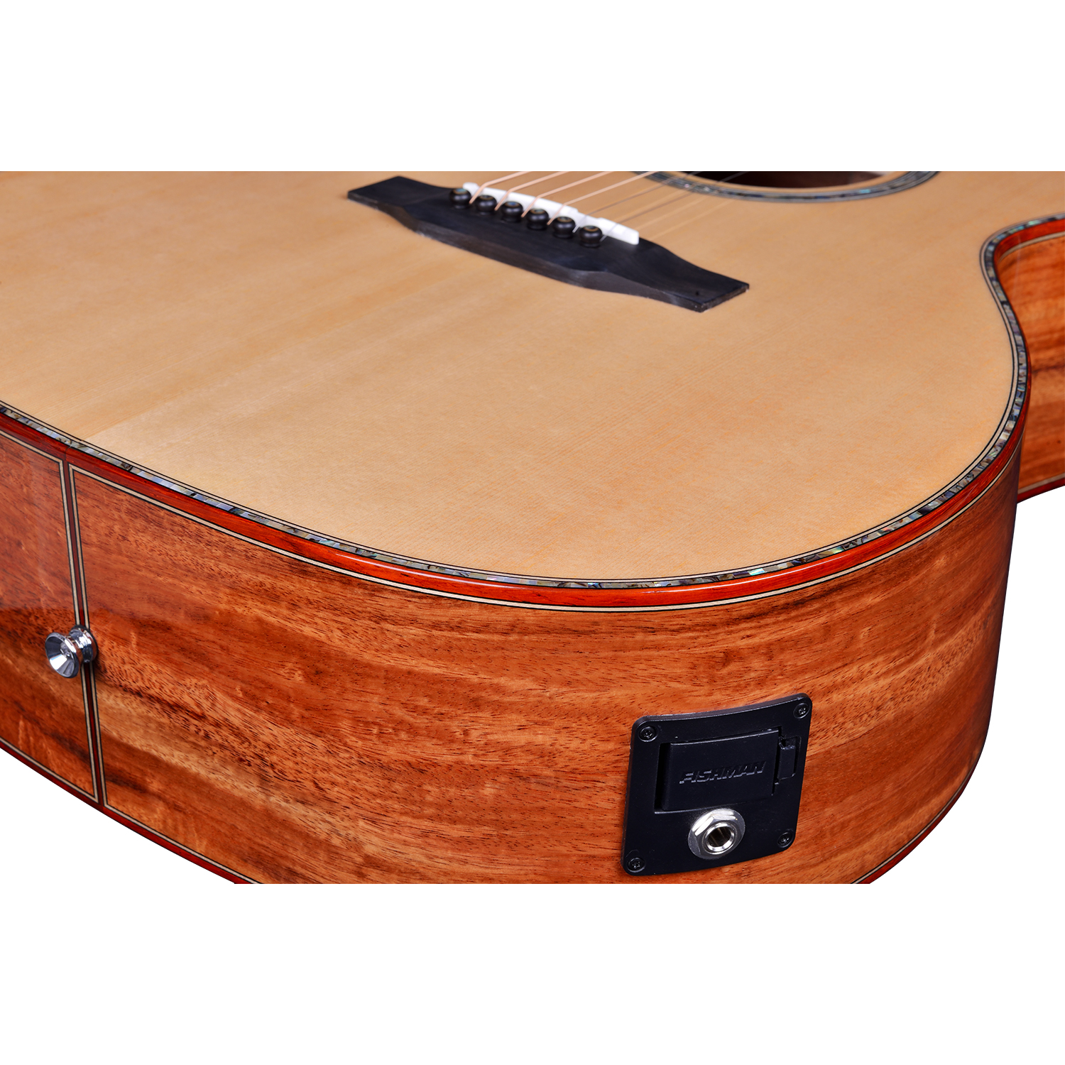 This is Artist's top of the range OM acoustic guitar. Sporting a solid Sitka top and solid bubinga back and sides. This is an acoustic guitar that is truly of superior quality and tone. It will definitely hold it's own against any of its competitors. Accompanying the choice quality timbers is the unrivalled Fishman INK 4 OEM preamp which offers a 3 band EQ and a built in tuner that can certainly give you your tone needs whatever the situation.