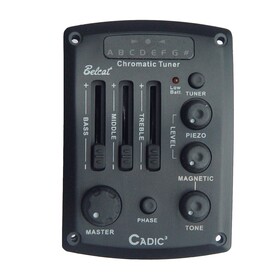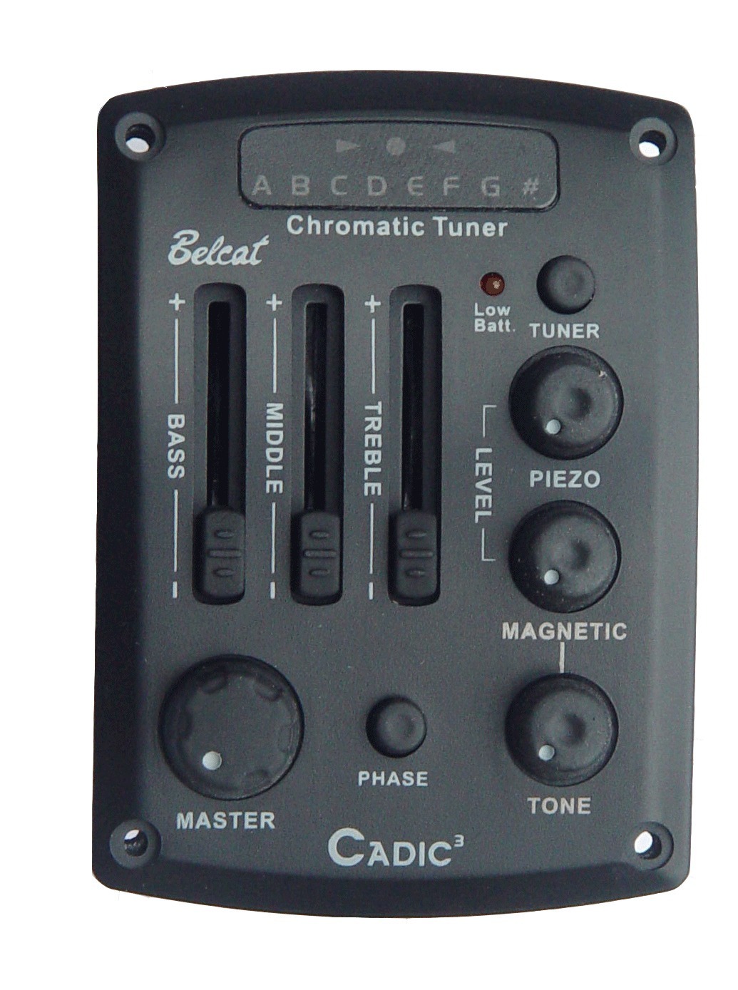 Firstly we added a piezo and magnetic preamp. The Cadic 3 preamp has a built-in chromatic tuner, 3 band EQ, Phase (phase can help reduce feedback)