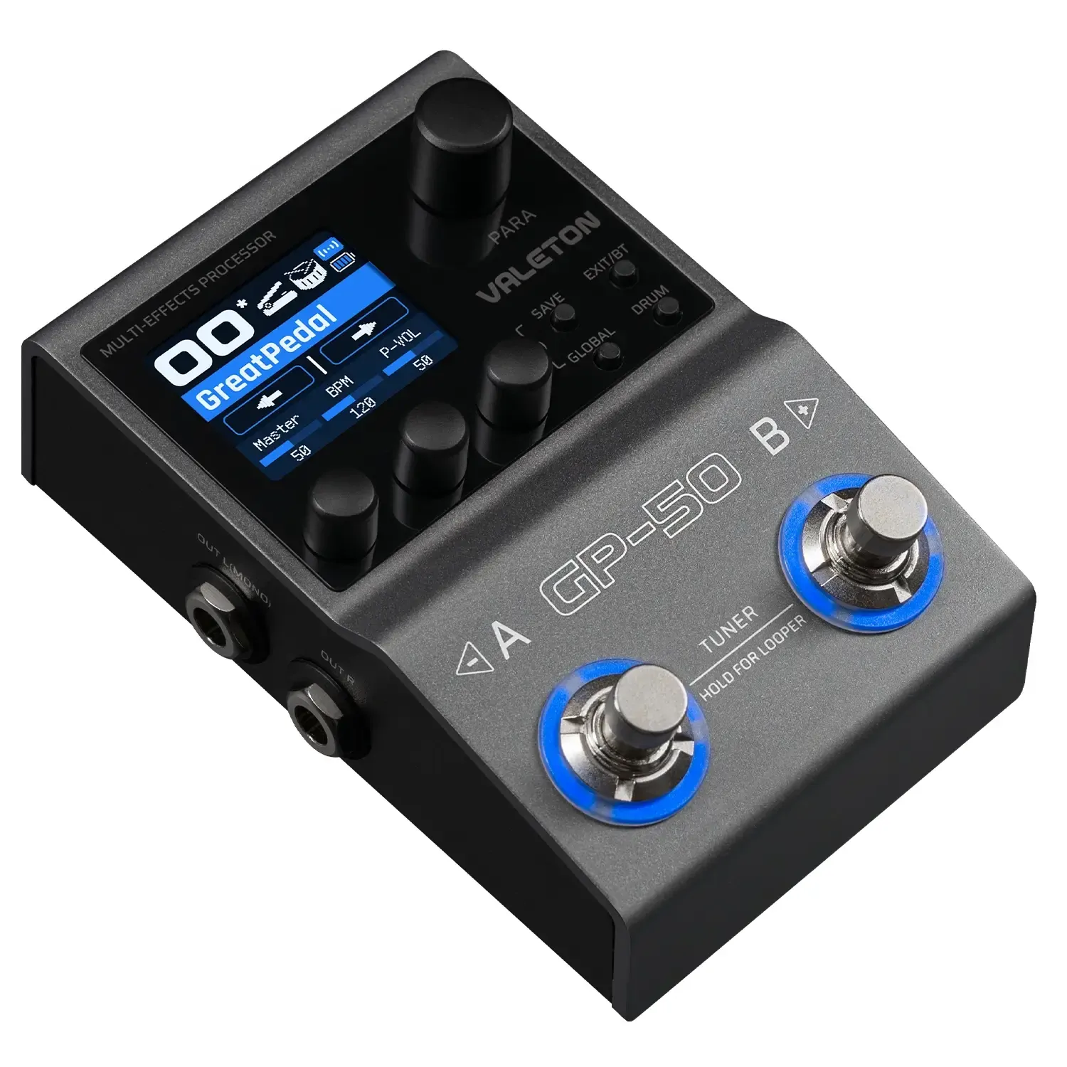 Finding the sweet spot between tone and portability is never easy. With the new GP-50, Valeton takes that challenge head-on. Building on the beloved GP-5, the GP-50 pushes the boundaries with more power, more flexibility, and more ways to play. It is everything players loved about the GP-5, expanded and refined for today’s musicians. With Neural Amp Modeller (NAM) compatibility and a streamlined SnapTone™ system for seamless integration of third-party amp captures and tone files, the GP50 is the ultimate rig-in-a-box!